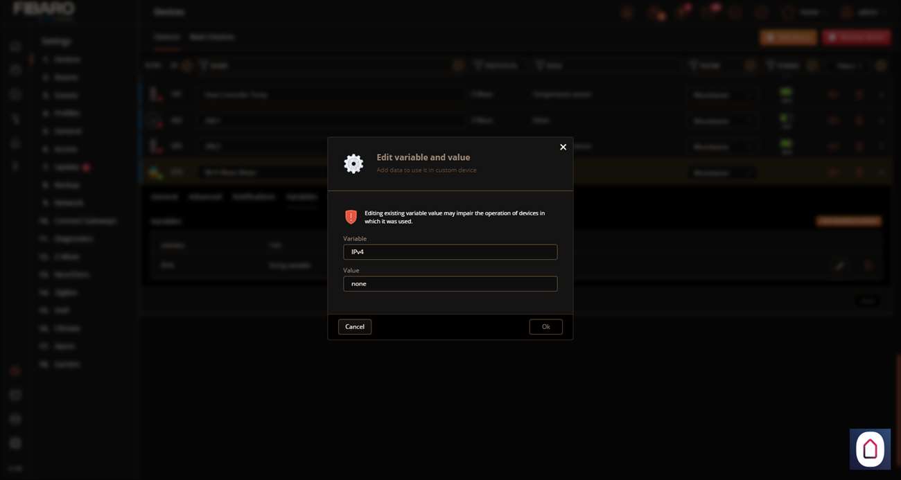 Nu wordt alles geinstalleerd en moeten we zorgen dat het juist ip-adres in de configuratie komt te staan. Dit doe je bij de apparaat configuratie en dan naar "variables" te gaan en daar je lokale ip-adres in te vullen.