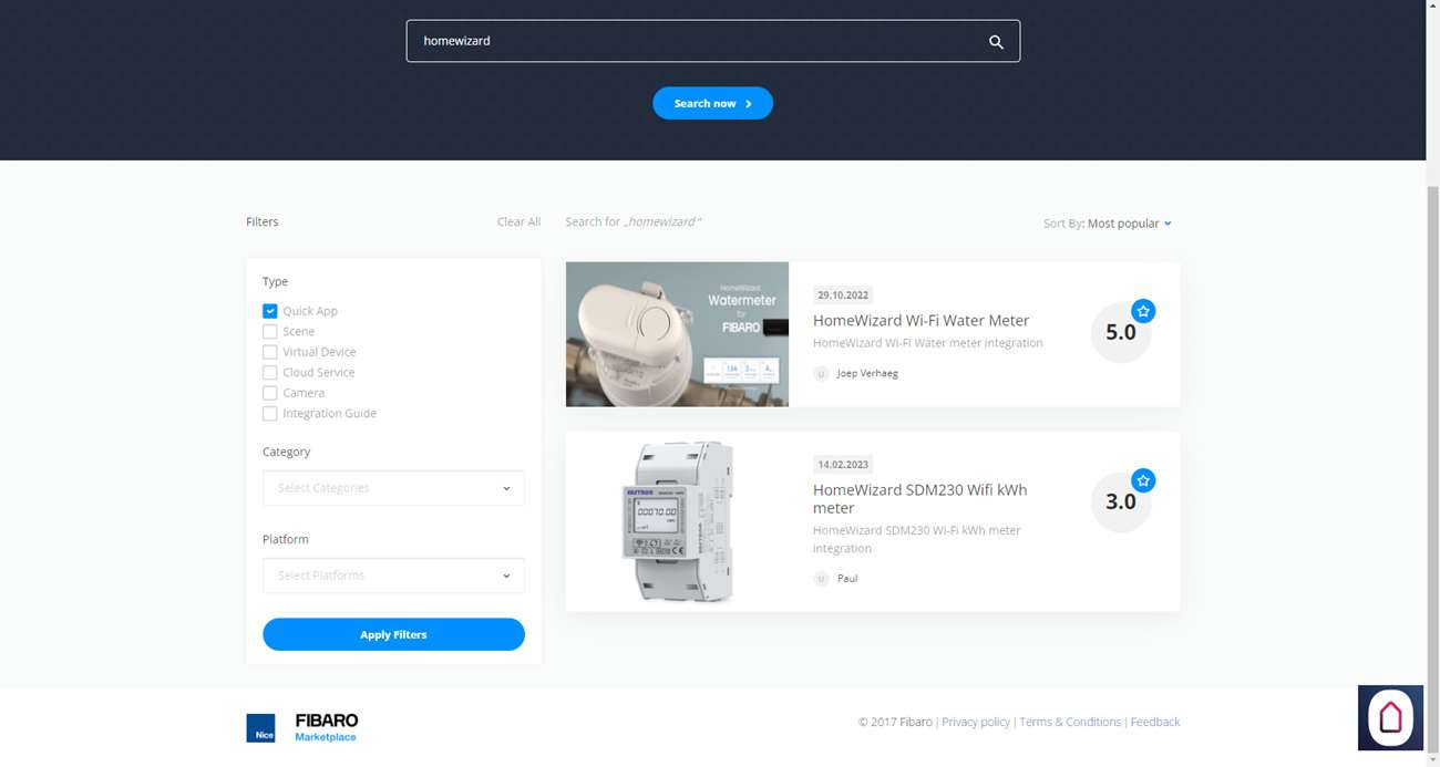 Om dit werkend te krijgen gaan we eerst naar de HomeWizard APP en zetten bij de configuratie "local API" aan. Nu gaan we naar de marktplace van Fibaro en zoeken daar op HomeWizard (https://marketplace.fibaro.com/items/homewizard-wi-fi-water-meter) en downloaden het bestand en pakken deze uit.