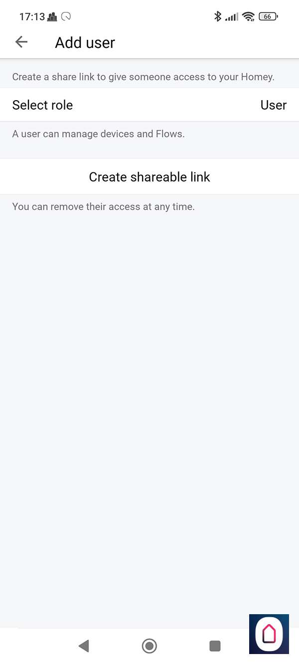 In het gebruikersgedeelte kun je iemand toegang geven tot jouw Homey. Het is niet mogelijk om verschillende rollen/rechten toe te kennen, een gebruiker mag dus alles.