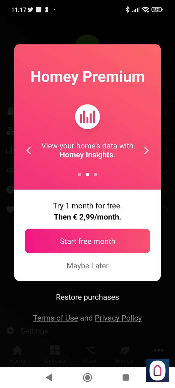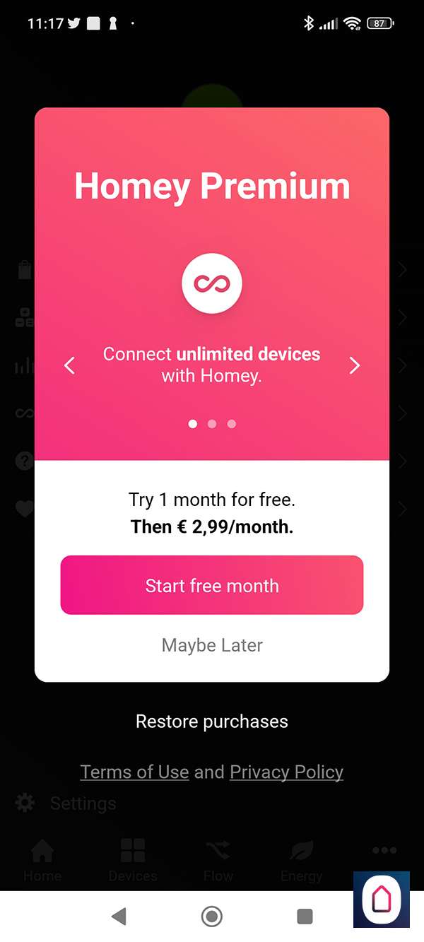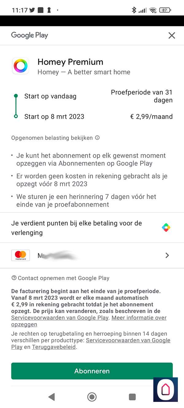 De eerst 3 maanden krijg je overigens gratis van Homey, dat is aardig van ze.