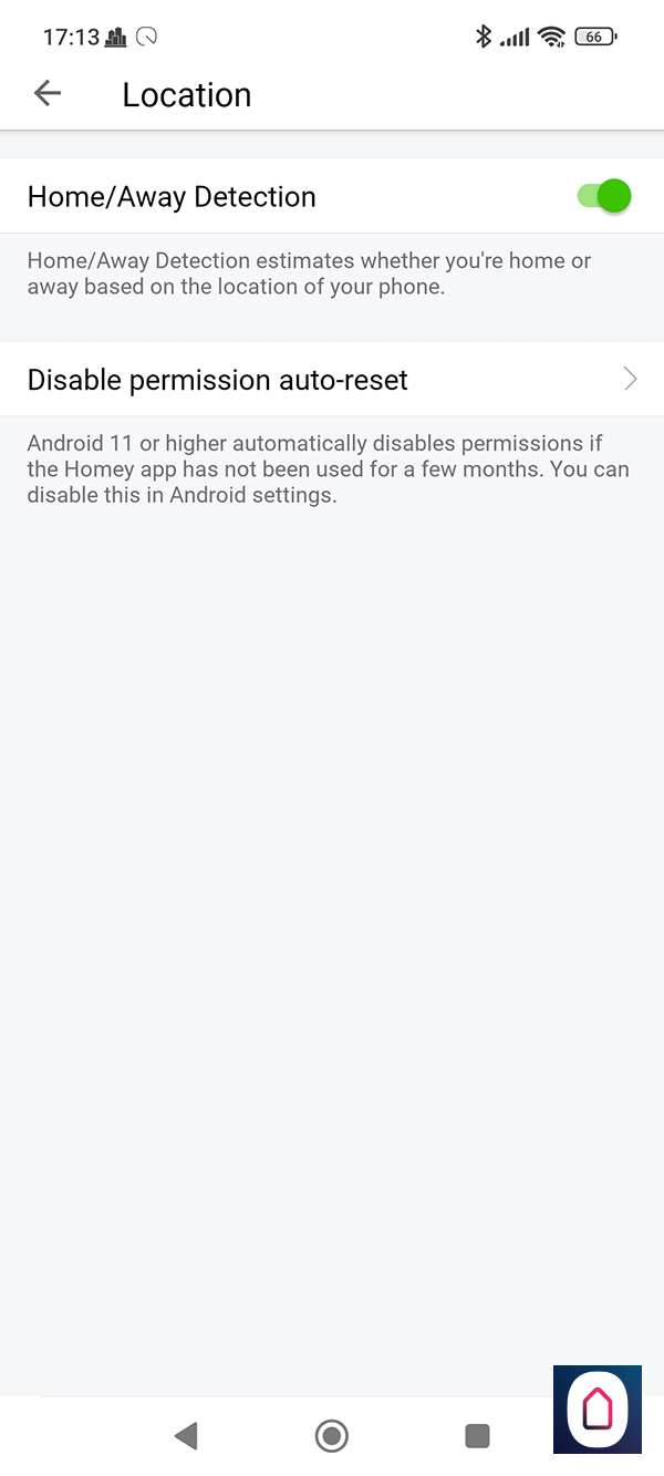 De Homey heeft de mogelijkheid om de locatie van je huis via de APP van de telefoon op te halen. Je kunt ook zelf een locatie selecteren.