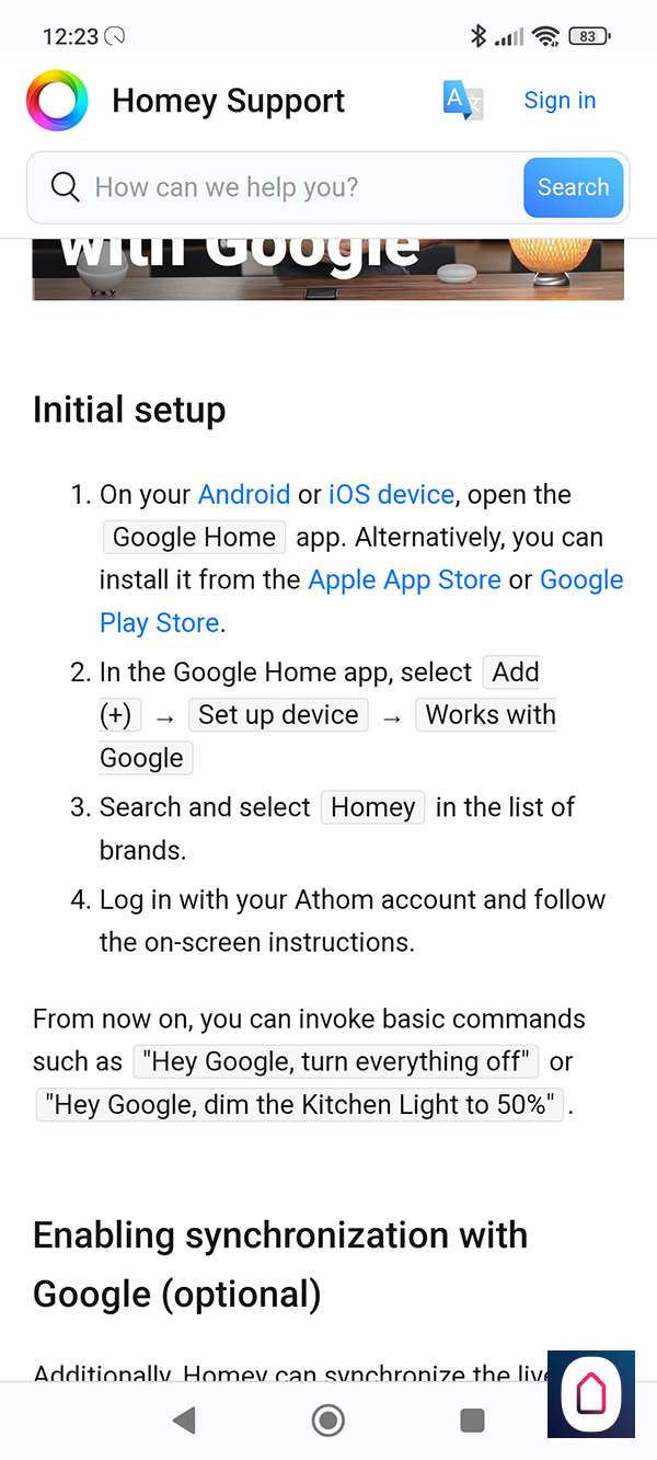 Het verbinden ging bij ons zonder problemen. Om via de Google Home de Homey aan te roepen vraag je aan hem bv het volgende: Oke, Google, zet de lampen in de woonkamer aan. Het commando wordt dan naar de Homey gestuurd waarbij de Homey een terugkoppeling geeft. Dit is een andere stem dan die van de GH.