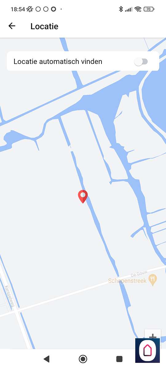 De Homey heeft de mogelijkheid om de locatie van je huis via de APP van de telefoon op te halen. Je kunt ook zelf een locatie selecteren. Dit is metname handig voor de detectie of je thuis of weg bent. Handig om automatisch zaken uit of aan te zetten.