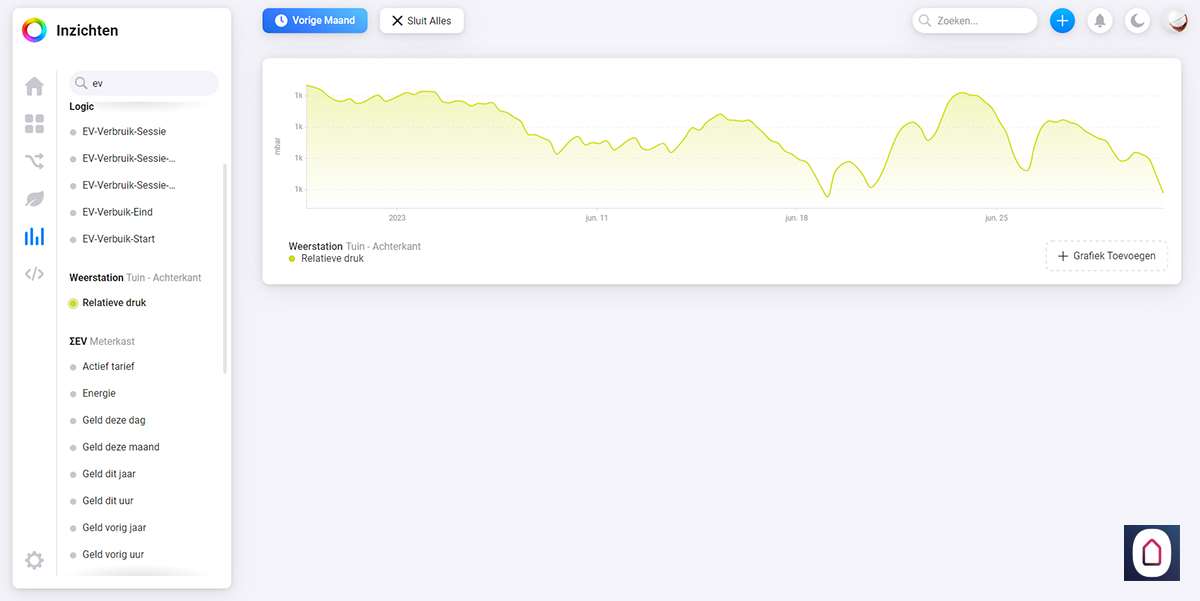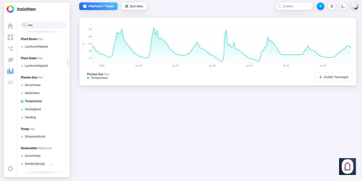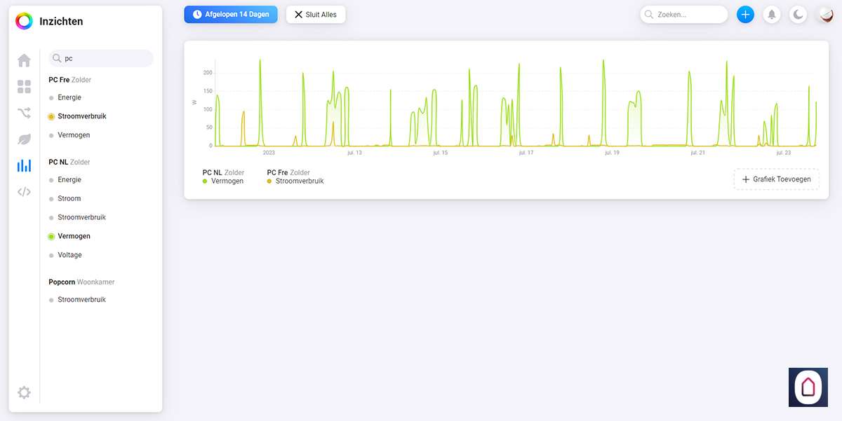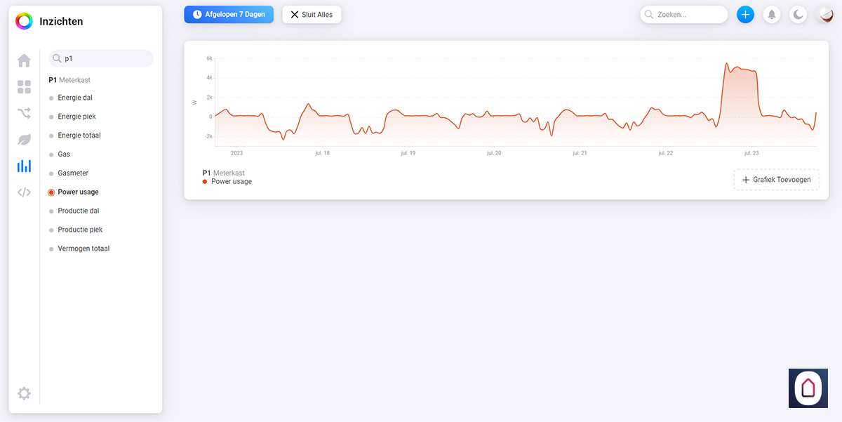 In de APP, bij het energie gedeelte, kun je globaal het energieverbruik in zien. Hierbij kun je niet zo gemakkelijk vergelijken en terug zien. Hiervoor heeft de Homey het "inzichten" gedeelte. Deze kun je het beste opvragen via de computer. Je kunt naast het energieverbruik ook het temperatuurverloop van een temperatuursensor inzien Dit gedeelte is zeer uitgebreid opgezet. Zo kun je terug in de tijd kijken, de grafieken exporteren, een CSV bestand van de data maken, alles verwijderen en het grafiektype veranderen. Je kunt ook meerdere sensoren aanvinken om deze met elkaar te vergelijken, superhandig dus.