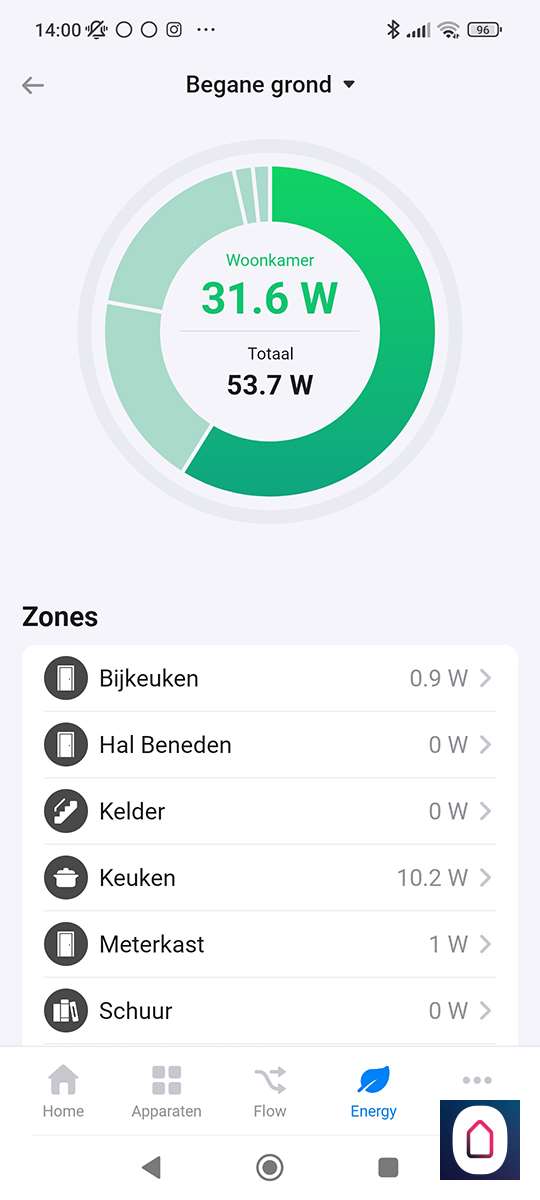 Als je nou een apparaat hebt waarvan het verbruik niet wordt bijgehouden? Dan kun je dit toch regelen via de Homey. Je kunt namelijk het standby verbruik (uit stand) en "aan" verbruik invoeren. Handige feature.