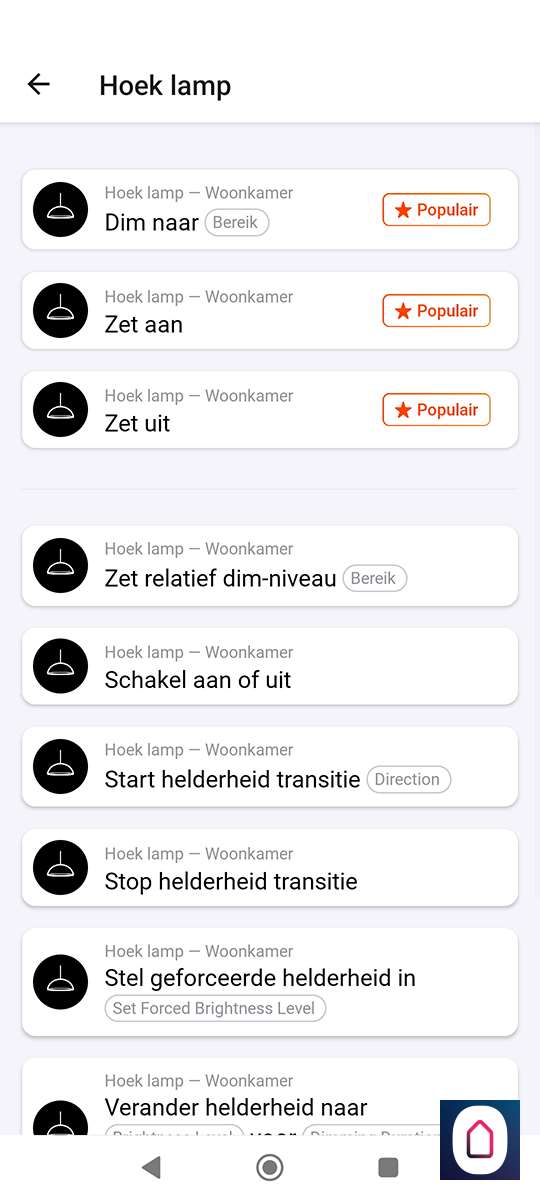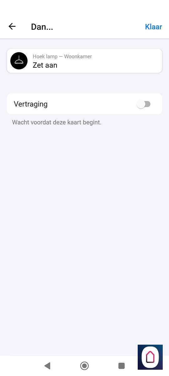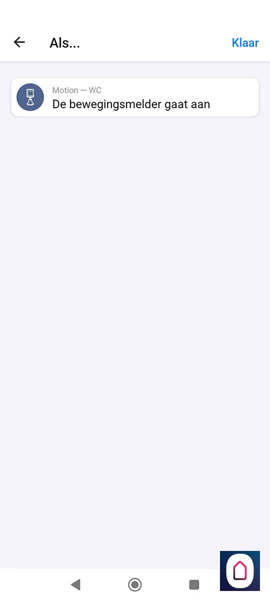 Nu hebben we alle voorwaarden gemaakt en kunnen we de lamp aanzetten. Wil je de lamp nu weer uit hebben? Dan maken we een nieuwe flow en nemen als vertrekpunt "als er geen beweging is".