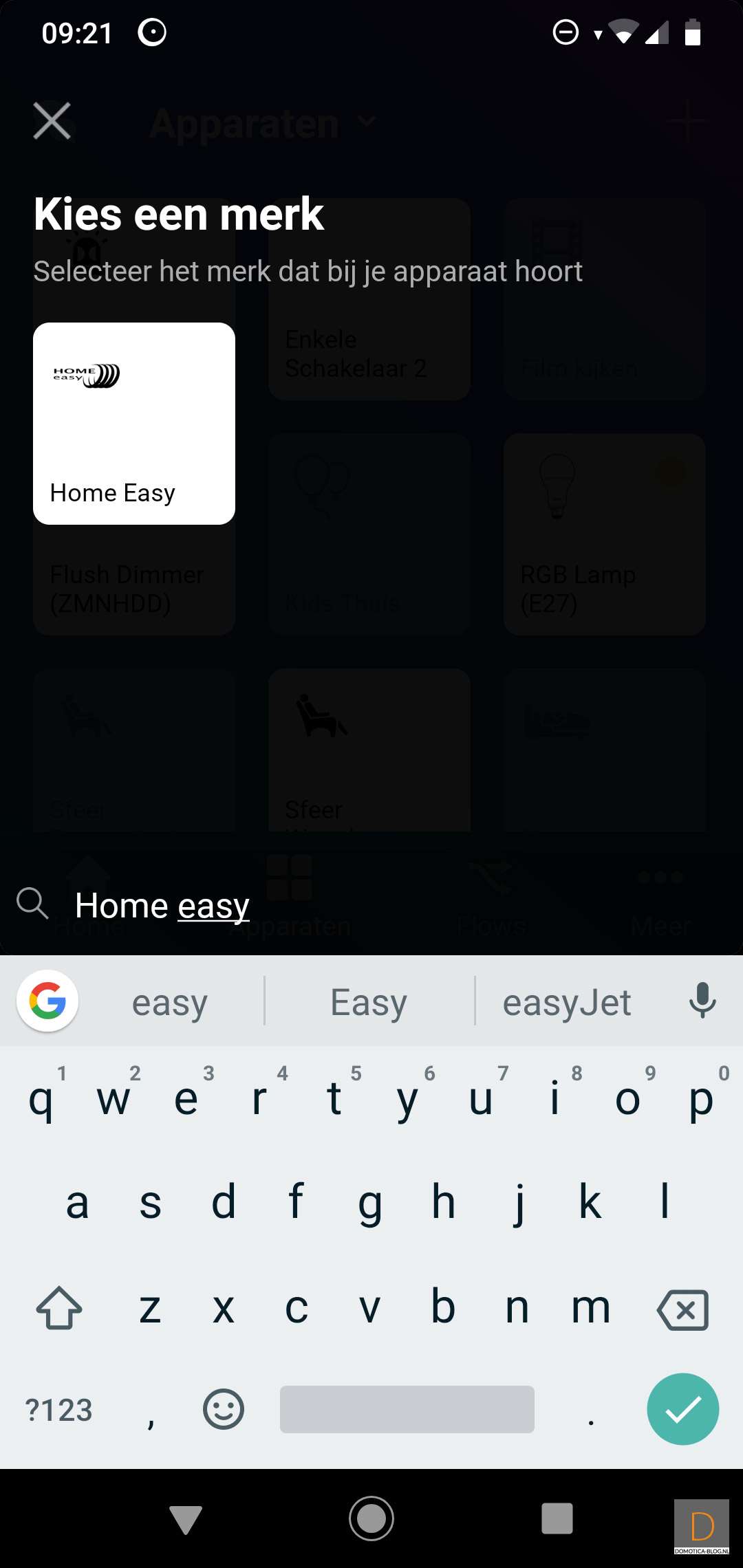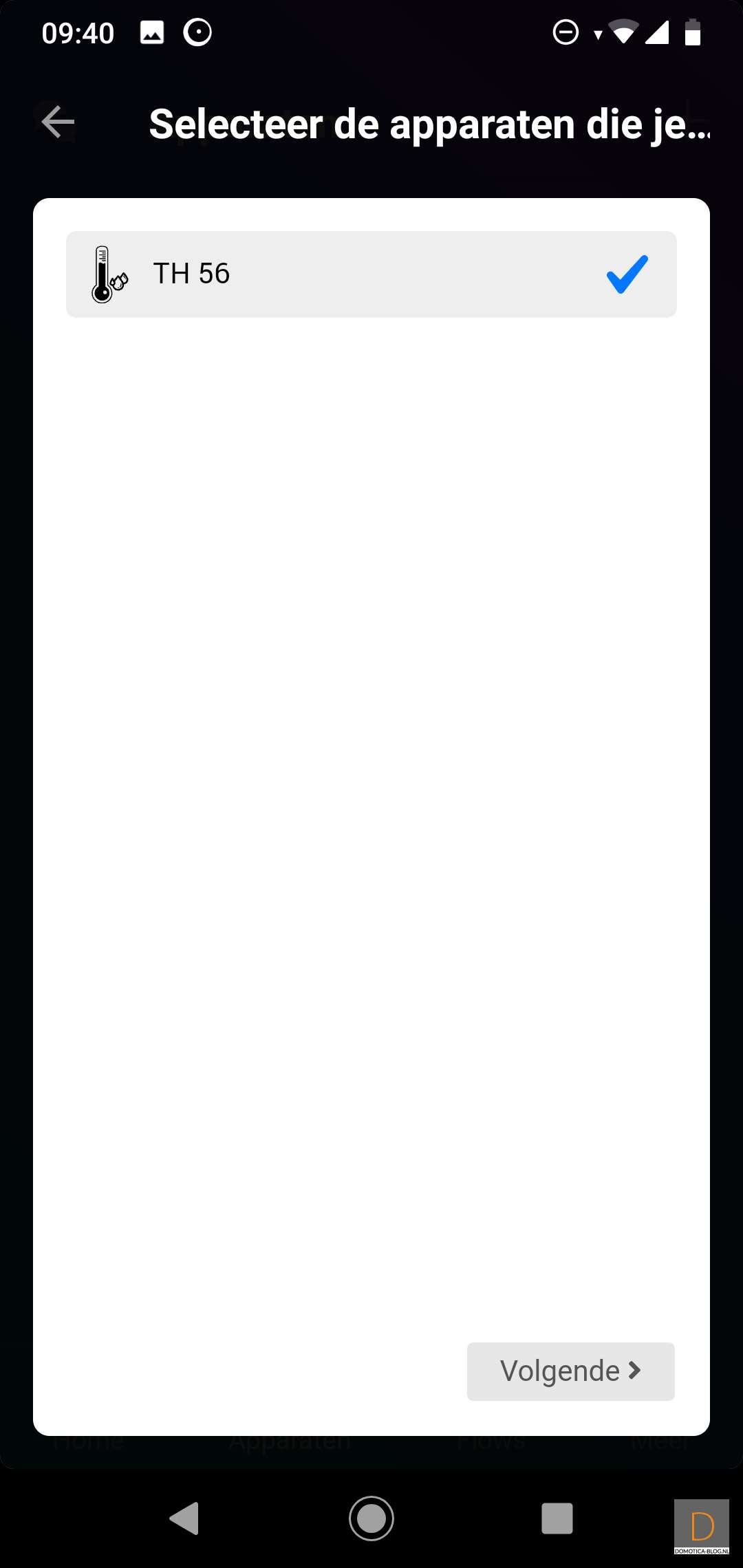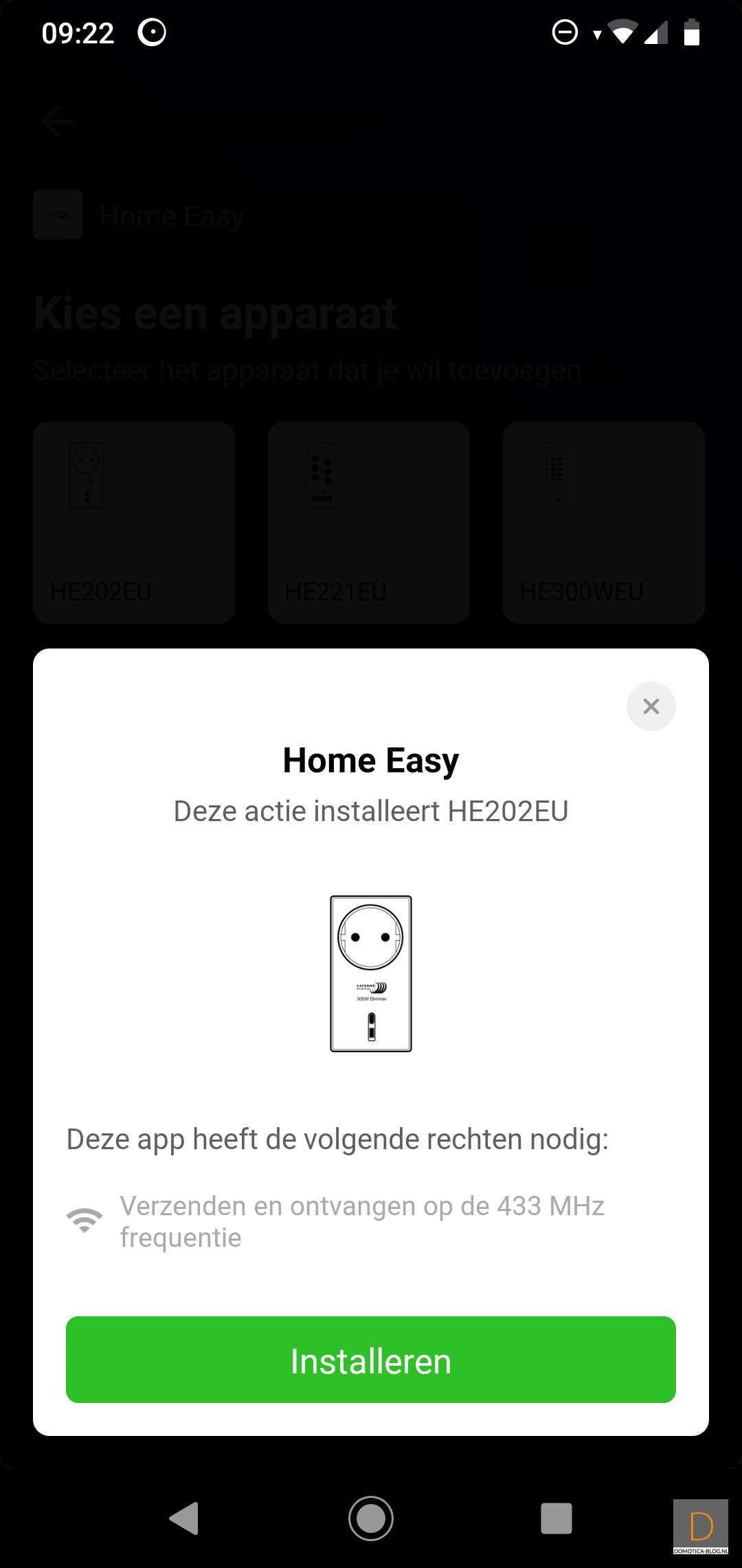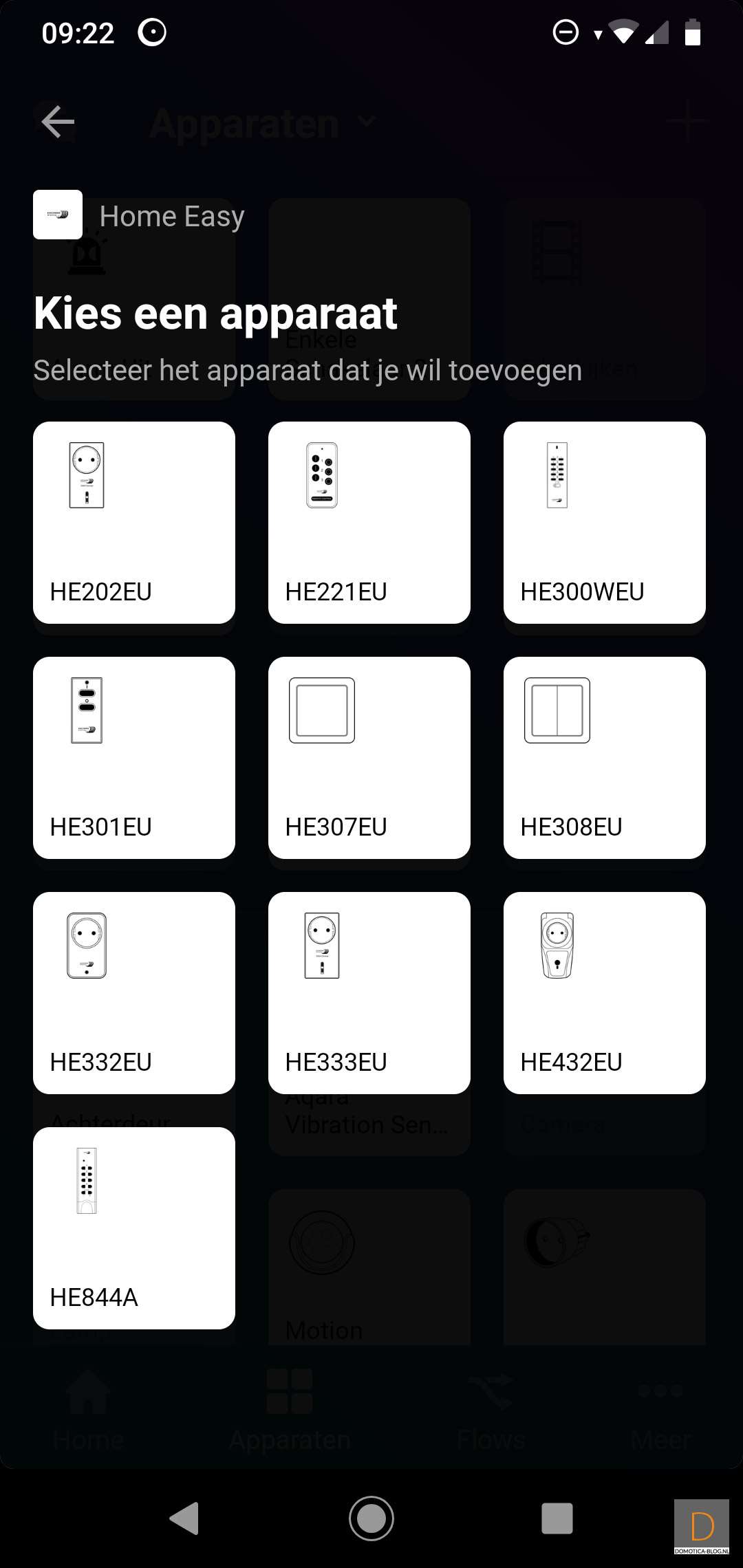 Helaas dus nog niet zoveel succes met de 433Mhz apparaten. Tijd om er eentje te proberen, een tussenstekker, welke met de review kit wordt meegeleverd. Dit is een mooie compacte tussenstekker waar je een apparaat op kunt aansluiten van maximaal 1000W. Eens kijken of deze wél werkt. Dus we gaan weer naar apparaten en klikken op het plusje. Vervolgens zoeken we de stekker op, deze staat in het lijst. Na het toevoegen kan ik hem bedienen en reageert hij redelijk soepel op commando's.