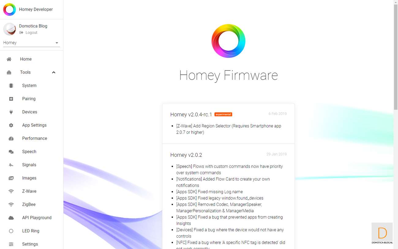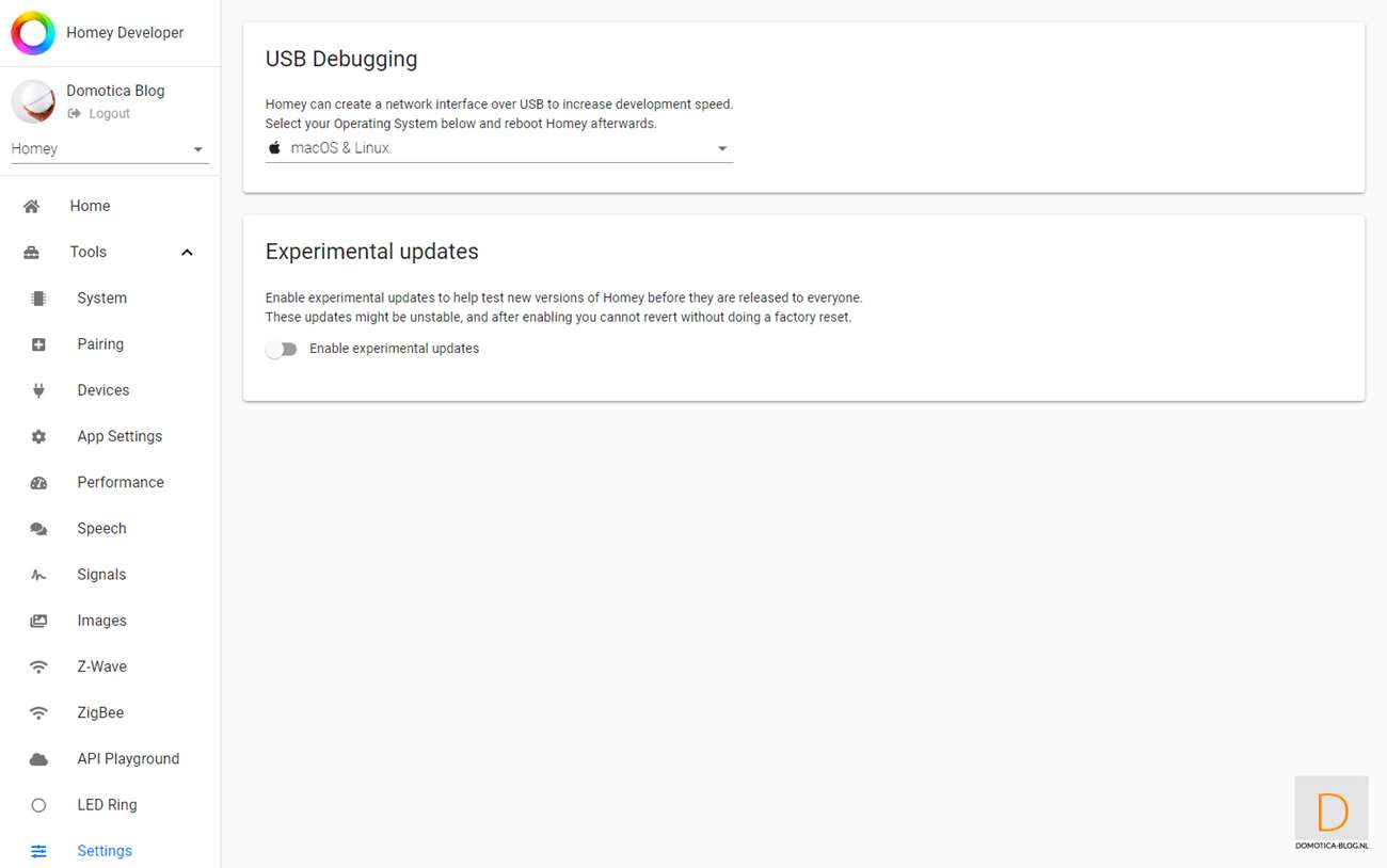 Hier kun je aangeven of je automatisch de laatste updates wilt ontvangen. Daarnaast is er een mogelijkheid om Beta firmwares te installeren. Uiteraard brengt dit het risico met zich mee dat je Homey niet meer goed werkt.