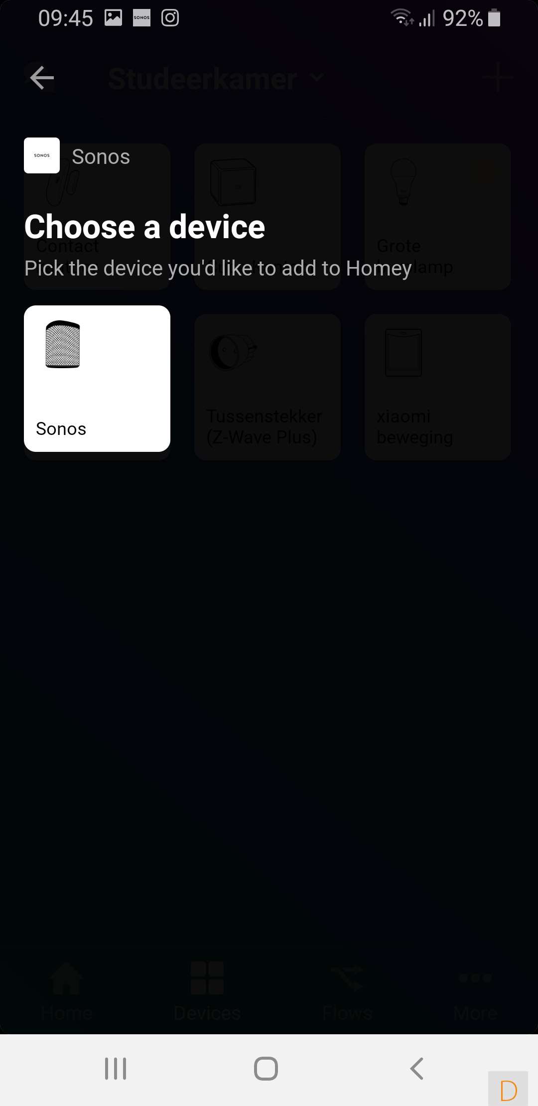 Het toevoegen van je Sonos speaker kun je doen door de APP op te starten en naar het apparaten gedeelte te gaan. Vervolgens zoek op Sonos en selecteer je de Sonos die je wilt toevoegen. Het toevoegen ging zonder problemen.