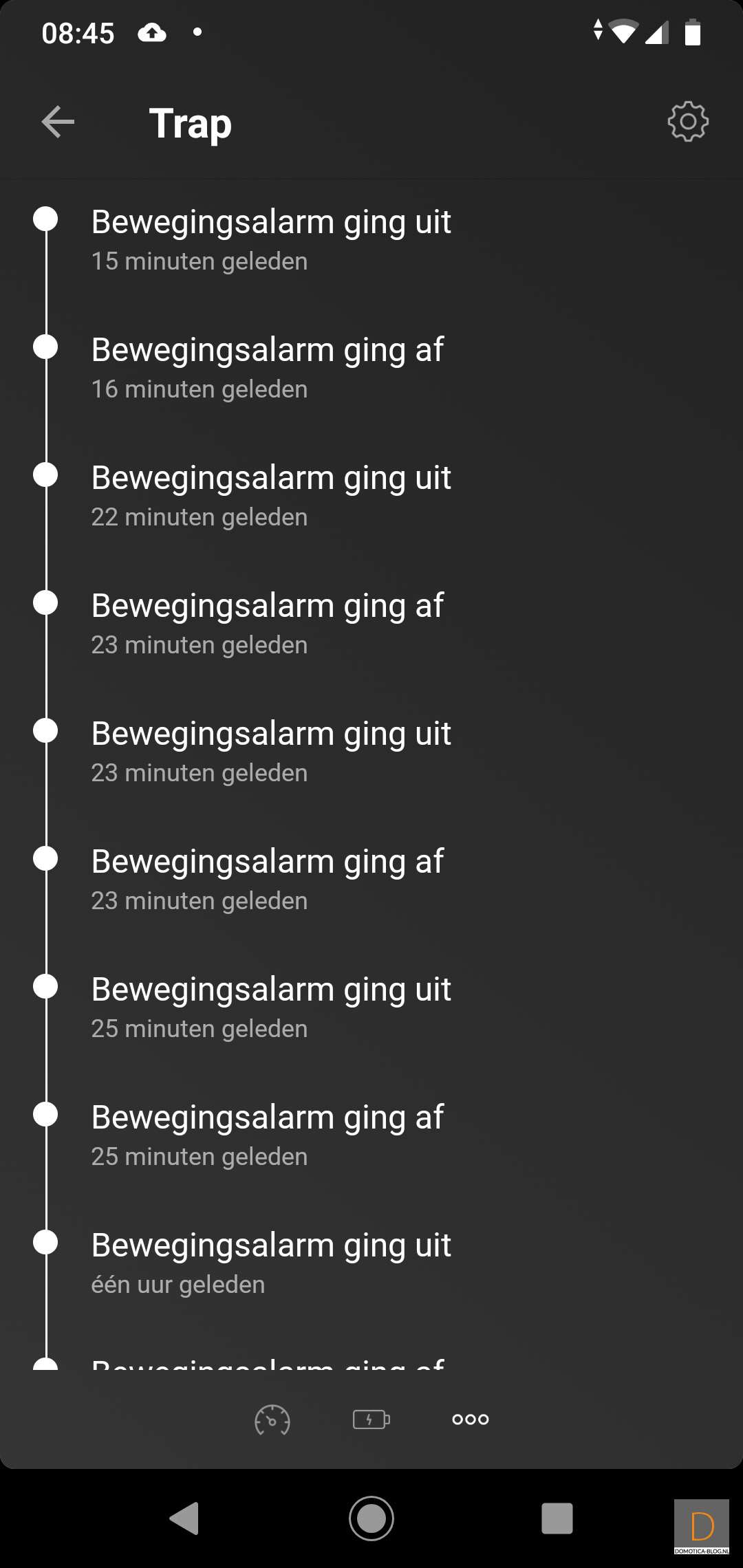 Zonder modules/apparaten kun je natuurlijk niet zoveel met de Homey. In het apparaten gedeelte vind je (heel verrassend) je apparaten. Je kunt een apparaat simpel aan- of uitzetten door op het icoontje te drukken. Als je hem vasthoudt dan kom je in het 'apparaat detail scherm'.