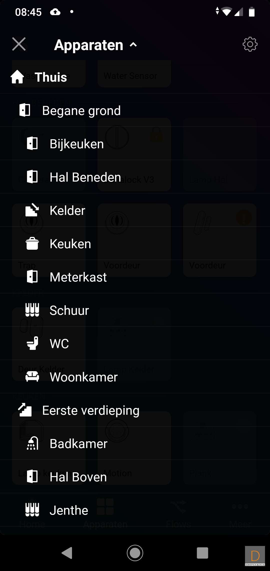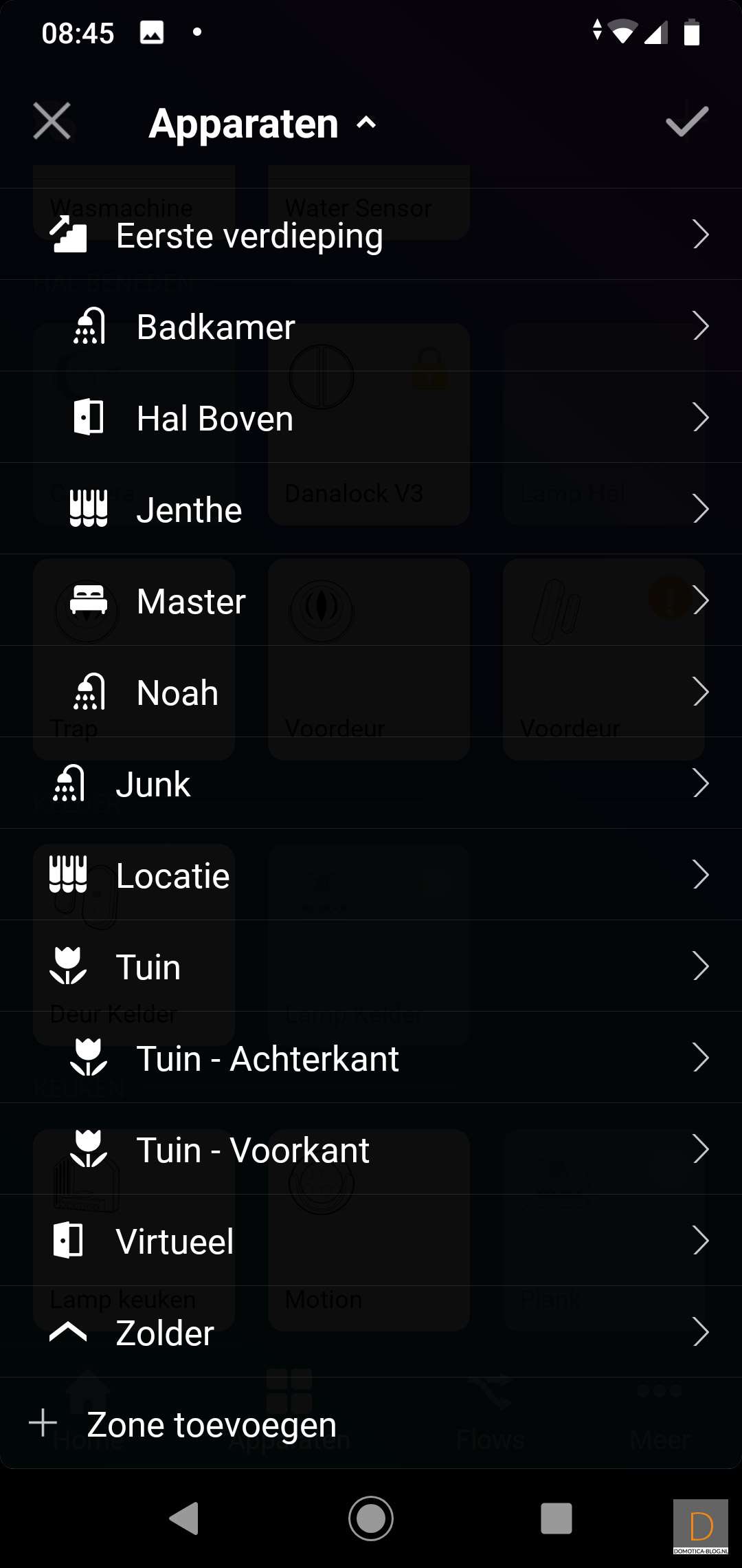 Je kunt apparaten in een bepaalde zone zetten zodat je ze logisch kunt indelen. Er zijn standaard al een paar zones aangemaakt.