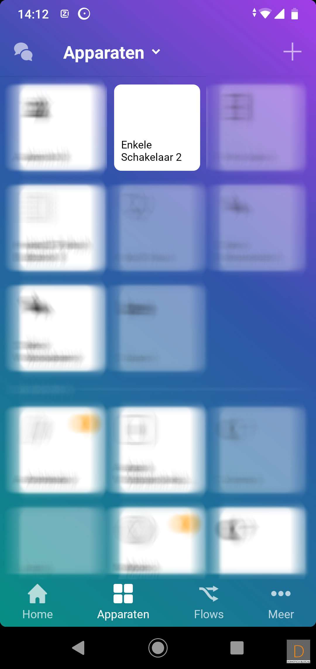 Nieuwe apparaten kunnen worden toegevoegd via de + knop.