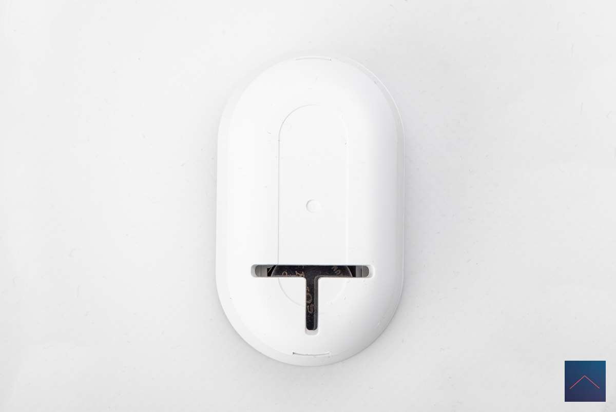 Hij wordt gevoegd door twee CR2032 batterijen welke worden meegeleverd. Door het gebruik van deze batterij is hij lekker compact en kun je hem dus redelijk onzichtbaar plaatsen. Er wordt geen beugel meegeleverd dus het richten van de sensor is wat lastig. Het vast maken aan de muur kun je doen door de meegeleverde dubbelzijdige sticker.