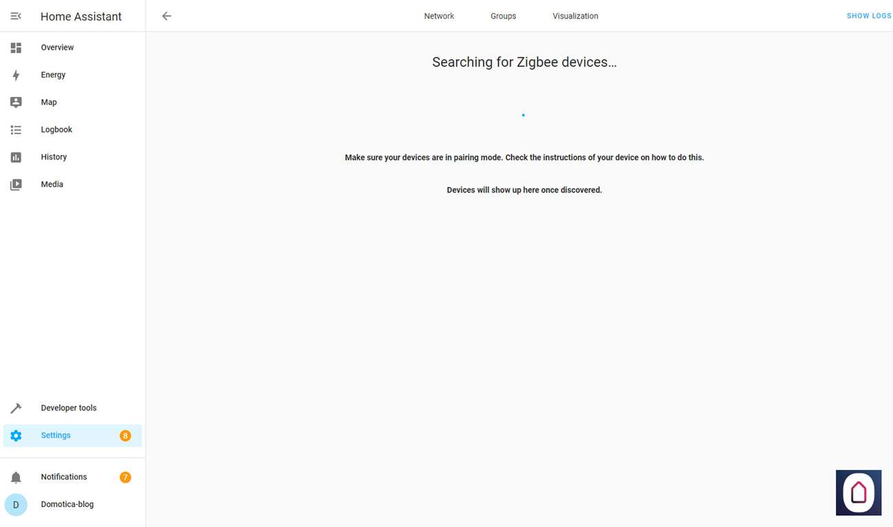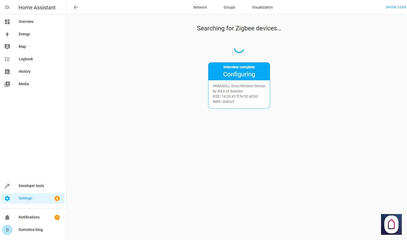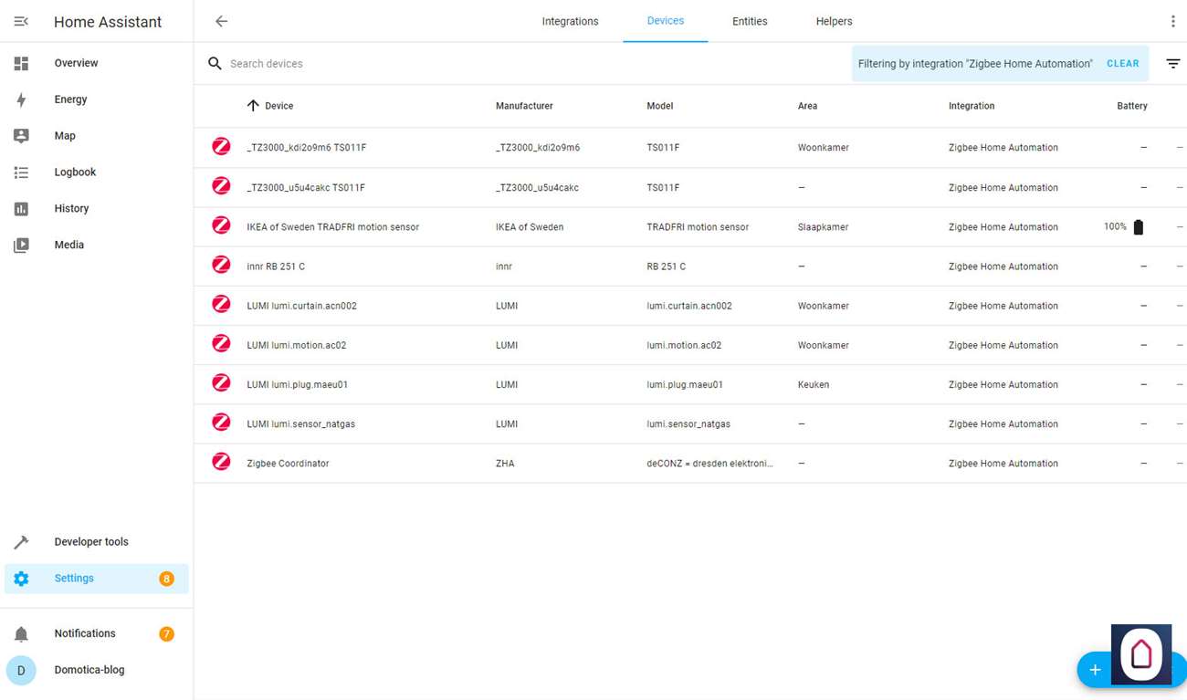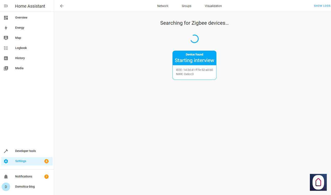 Nu gaan we naar de Conbee stick (bij je integraties) en klikken op apparaten en hierna op "add device" in Home Assistant om het zoeken te starten. Na enkele seconden zien we hem verschijnen.