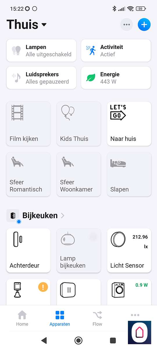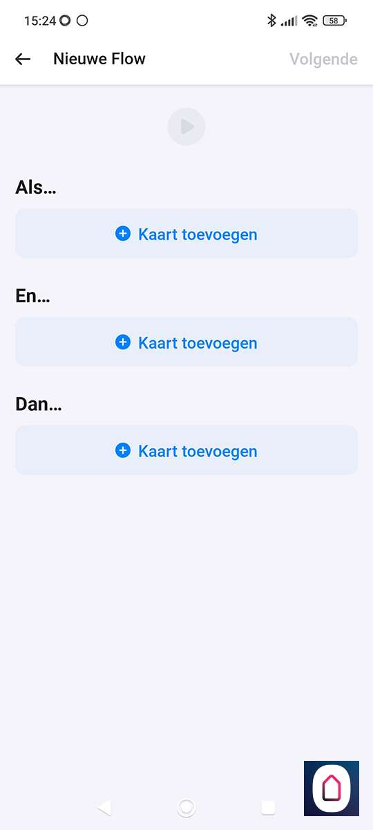 We maken een flow dat, als de voordeur opent gaat, er een lamp aangezet wordt.