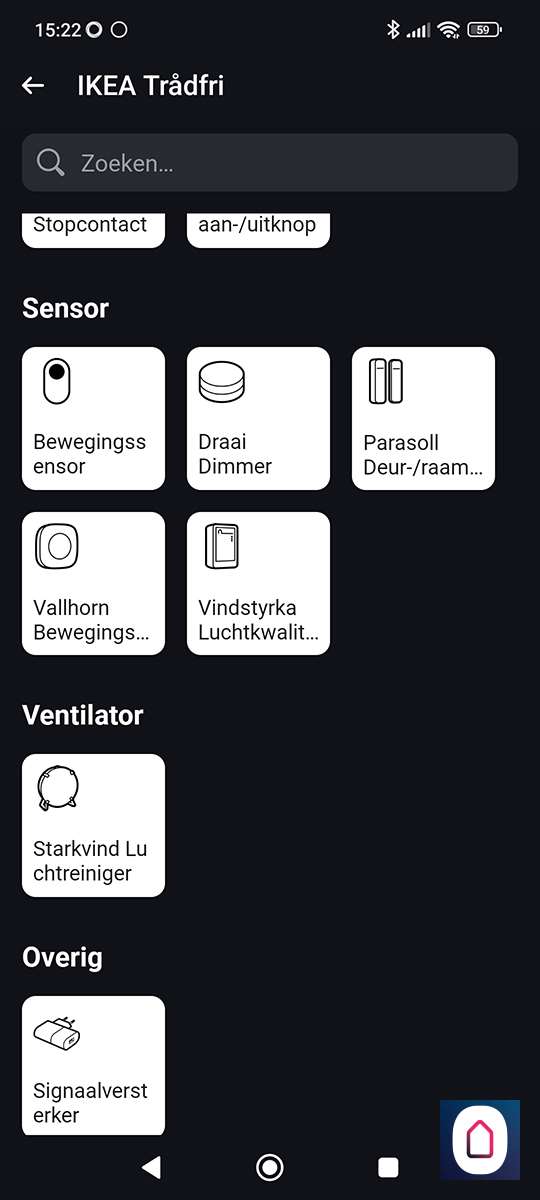 We gaan deze sensor natuurlijk ook toevoegen aan de Homey PRO. Bij de Homey werkt een apparaat het beste als deze een APP heeft. Als we op de website van Homey kijken, zien we dat dit het geval is, en nog mooier: de sensor staat ook in het lijstje met apparaten welke ondersteund worden. Kan dus niet misgaan.