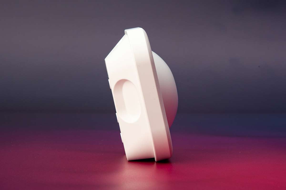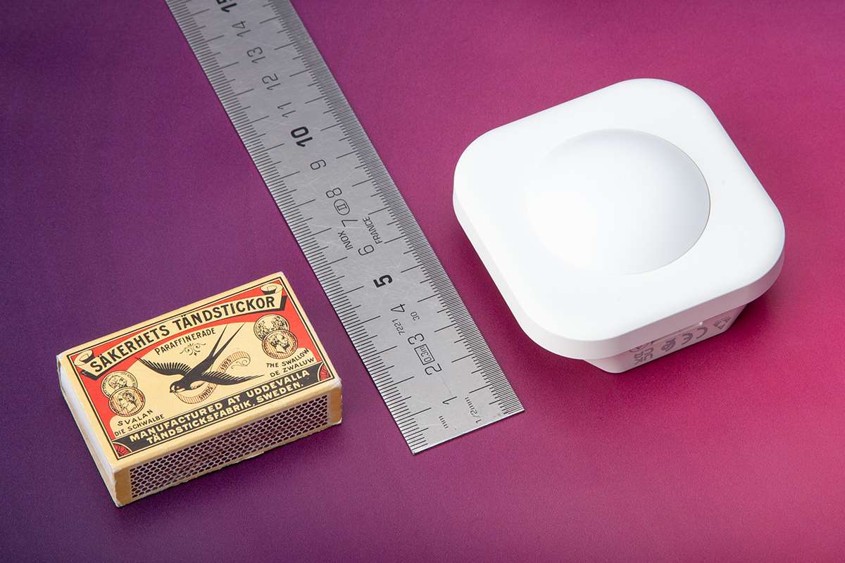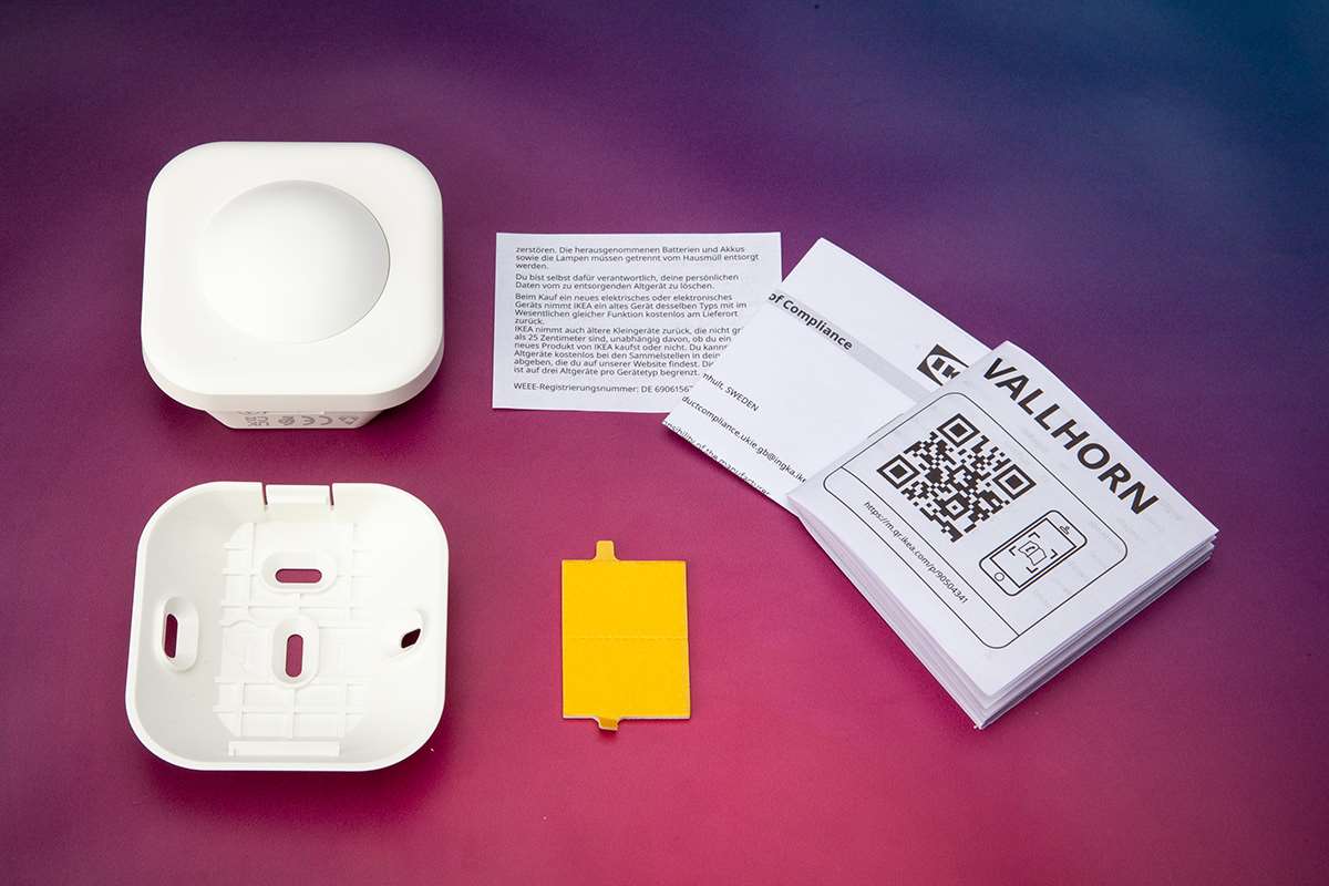 De Vallhorn komt in een compacte verpakking, typisch IKEA: minimalistisch design. De bewegingsmelder zelf is niet de kleinste op de markt, mat wit, en voelt degelijk aan. Je kunt 'm op een vlakke ondergrond zetten, of met de meegeleverde muurbeugel ophangen. Deze beugel is helaas niet te richten en zal dus altijd naar voren gericht zijn, maar de beugel heeft wel een mogelijkheid om hem in een hoek van een kamer op te hangen.