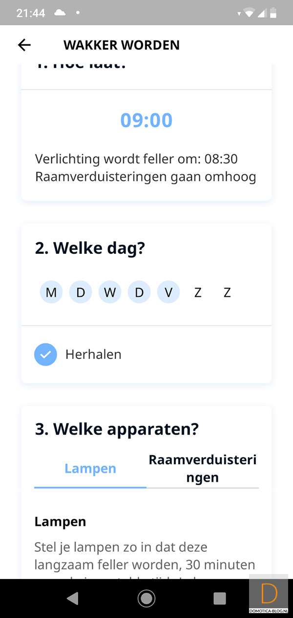 Op de Ikea controller maak ik een scene om een lamp aan te zetten als ik wakker word.