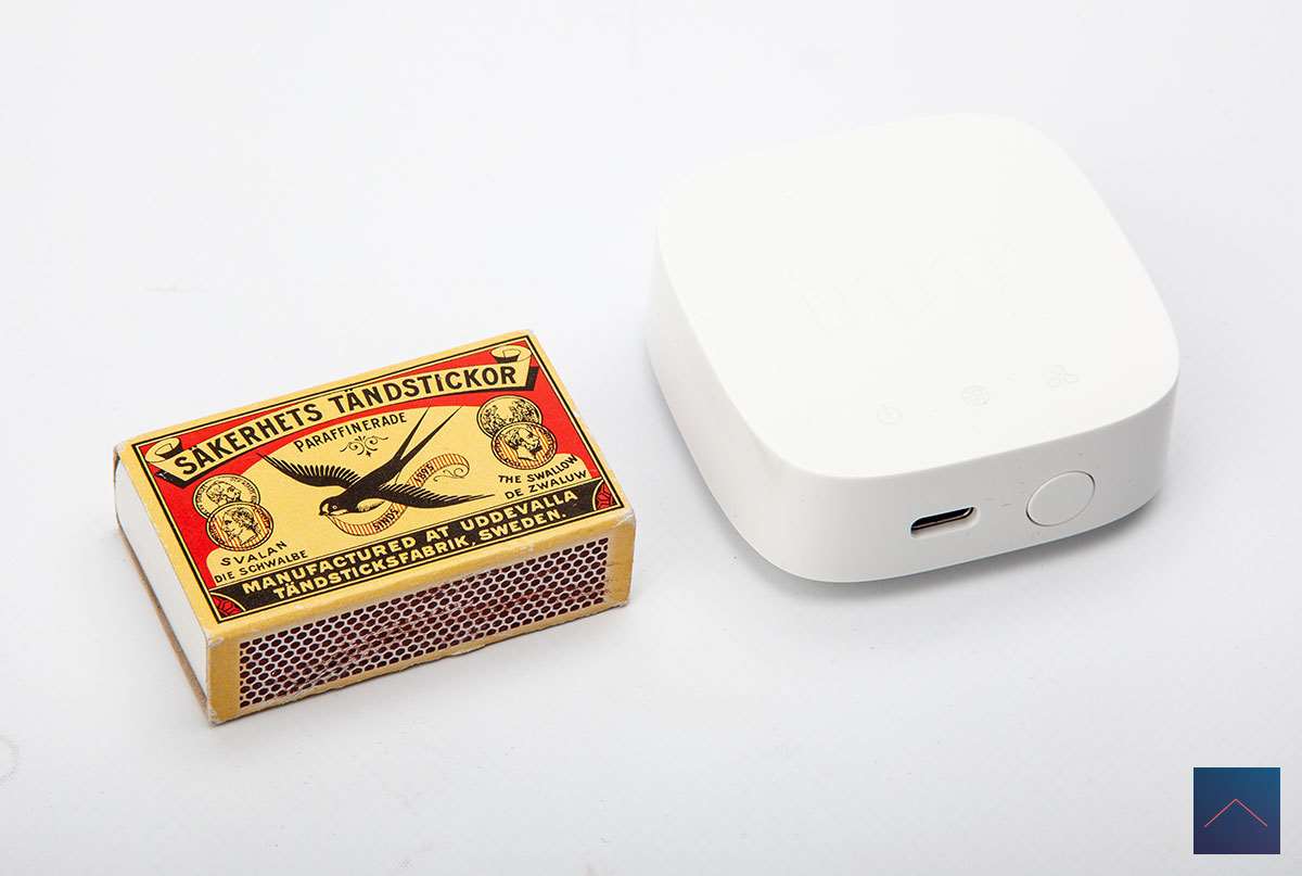 De bridge is super klein, dus zorg dat je hem niet kwijtraakt. Hij werkt via WiFi dus een UTP kabel is niet nodig. Hij wordt gevoed door een meegeleverde USB adapter en kabel, dus je hebt alleen een stopcontact nodig.
