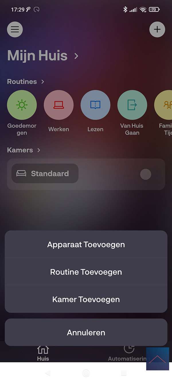 In de APP drukken we op het plusje rechts bovenin en hierna op 'apparaat toevoegen'. Je fotocamera wordt opgestart en we scannen de code op de onderkant van de bridge en dan voorzien we de bridge van stroom. Nu gaat jouw telefoon de bridge zoeken welke als een open WIFi punt ingesteld staat. Je telefoon verbindt hier volgens mee en installeert jouw WiFi netwerk. Na wat stappen is hij verbonden en kunnen we hem nu lokaal benaderen.