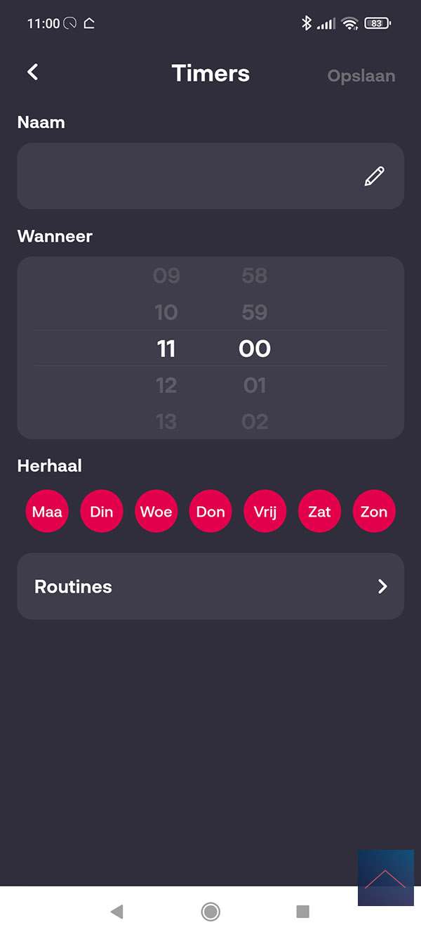 Hier kun je een vaste tijd instellen, en de dagen van de week selecteren.