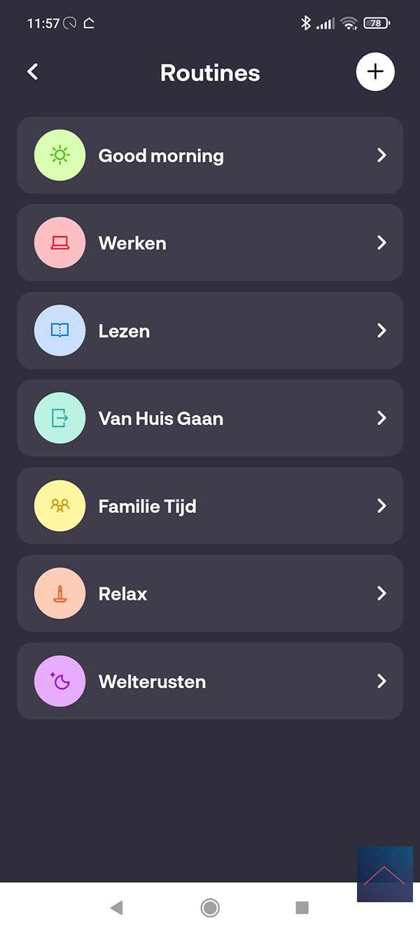 Om je huis wat slimmer te maken kun je gebruik maken van routines. Dit zijn regels die bv lampen aan- of uitzetten. Deze routines kun je via de APP maken. Er zijn een aantal standaard routines ingebouwd. Als je bijvoorbeeld gaat (thuis)werken, hierbij worden dan alle geselecteerde lampen aangezet en in jouw ideale kleur ingesteld.