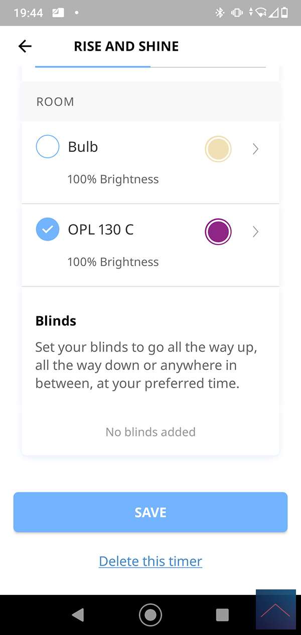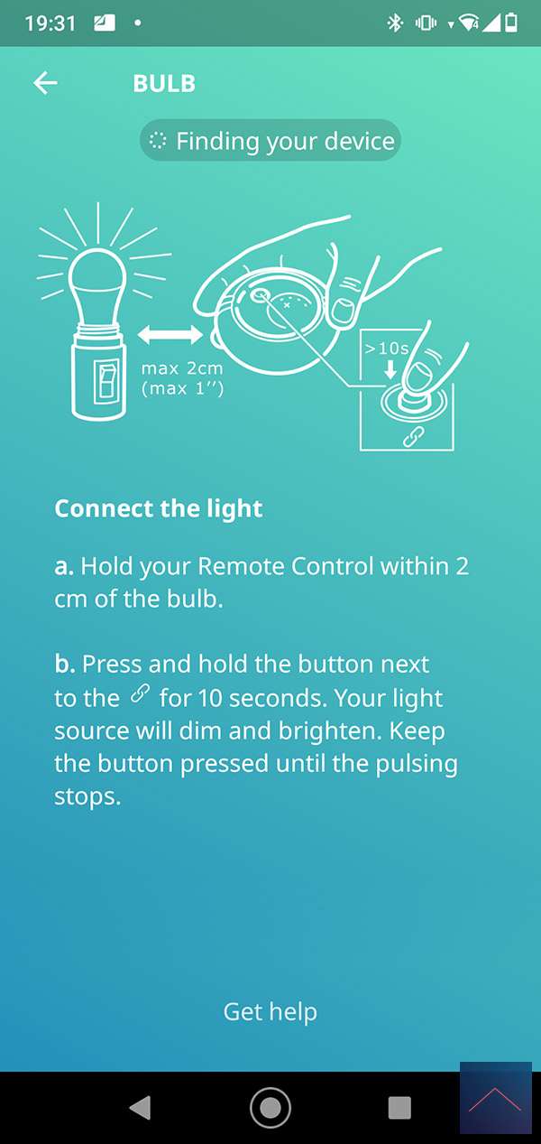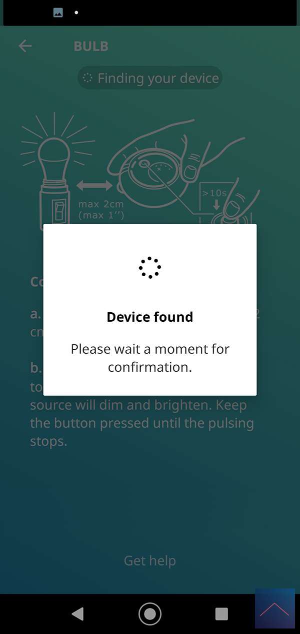Hierna gaan we naar de Ikea APP en gaan naar instellingen (radar icoontje) en dan naar "verlichting beheren". We drukken vervolgens op het plusje en hierna op LED-lamp. De lampen van Ikea moeten altijd gekoppeld worden via een afstandsbediening (of ander apparaat). Wij gebruiken hiervoor de afstandsbediening dus selecteren wij deze en drukken op volgende. Nu moeten we de lamp aanzetten en het knopje van de afstandsbediening aan de binnenkant 10 seconden ingedrukt houden. Ik zie de lamp knipperen en dat betekent dat hij gevonden is. Hij vindt hem hierna ook in de APP en ik kan hem bedienen.