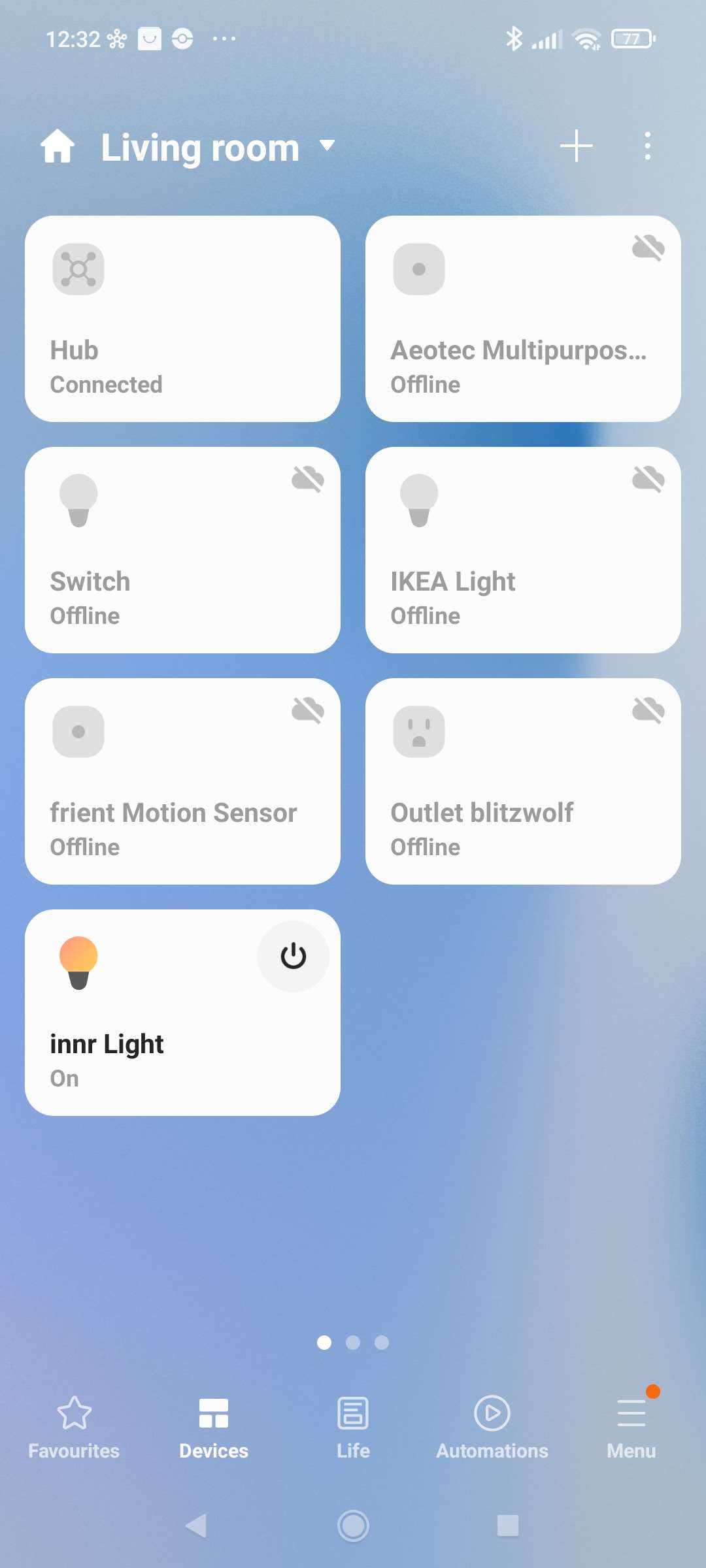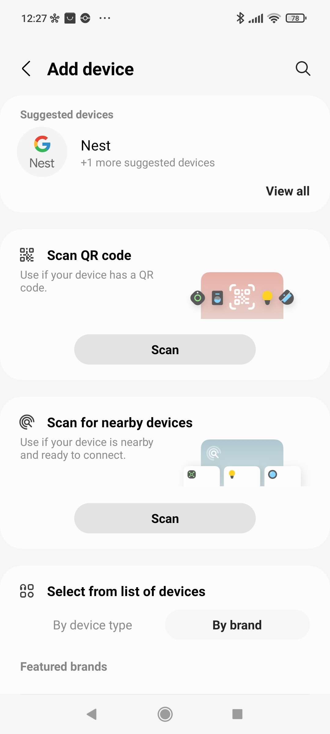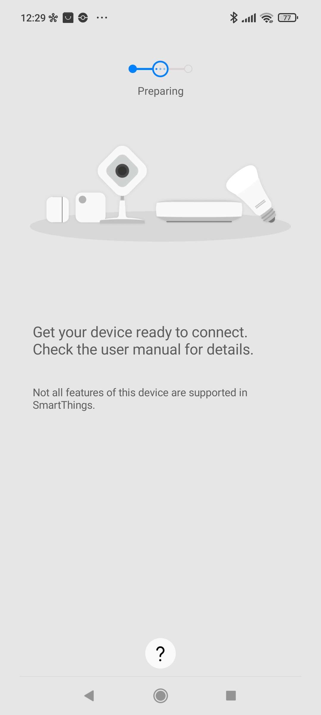 We gaan deze lamp ook toevoegen aan de Smartthings hub van Aeotec/Samsung. Dit kun je doen door naar je apparaten te gaan en op het plusje rechtsboven te klikken. De lamp heeft een QR code dus we gaan hem proberen op deze manier toe te voegen.