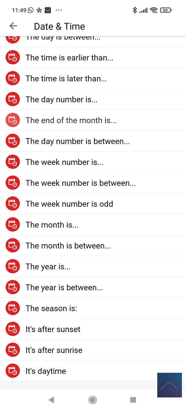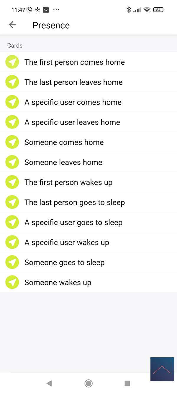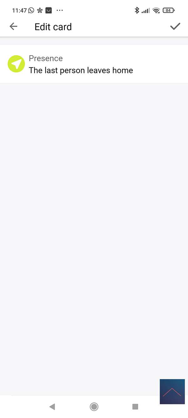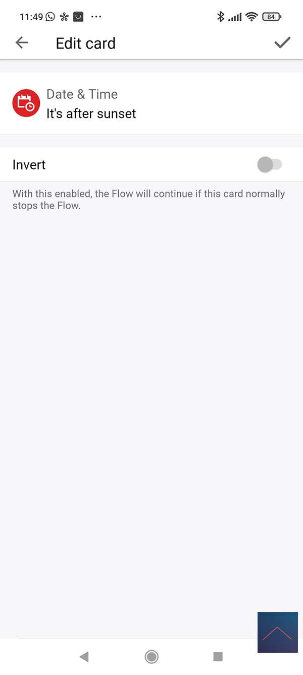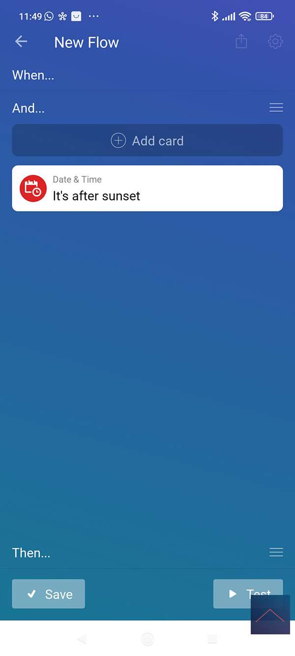 We maken dat als de laaste persoon van huis weg is dat de lamp aangezet wordt. Op deze manier lijkt het net of we thuis zijn. Om te zorgen dat overdag de lamp niet aan gaat, voegen we bij de "en" een regel toe dat dit alleen mag als het na zonsondergang is.