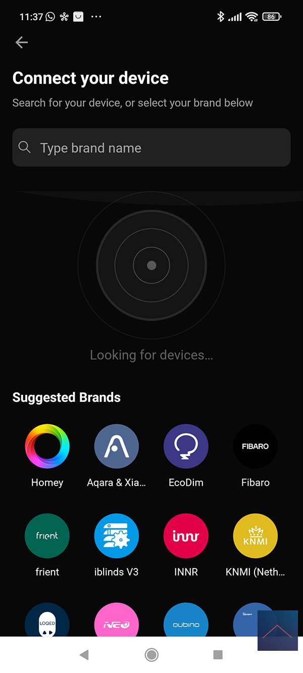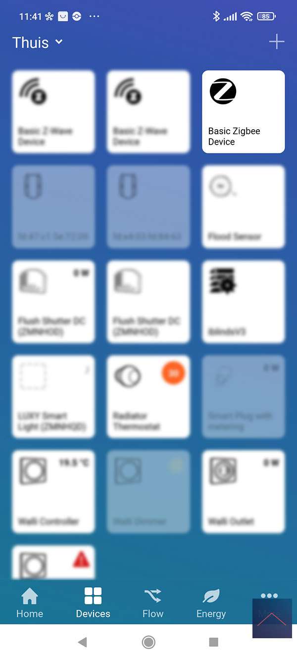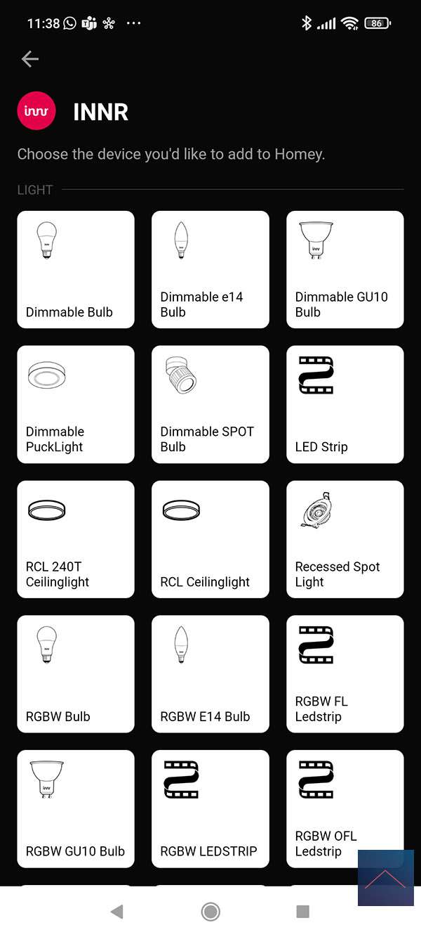 Dat deze lamp op de INNR bridge goed werkt is niet zo'n verrassing. Dus we voegen hem ook toe aan de Homey om te kijken of hij ook op een hub werkt die niet van INNR zelf is. Deze hub heeft ondersteuning voor de Zigbee protocol en er is een APP beschikbaar, dus het toevoegen zou ook hier geen problemen moeten geven.