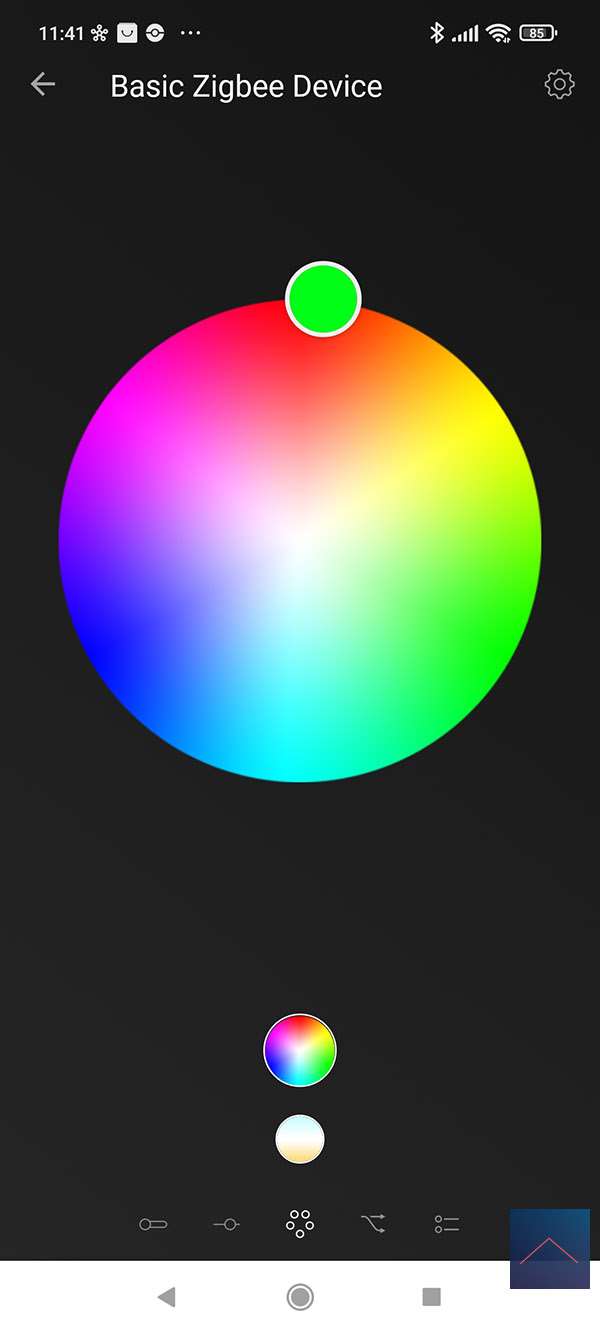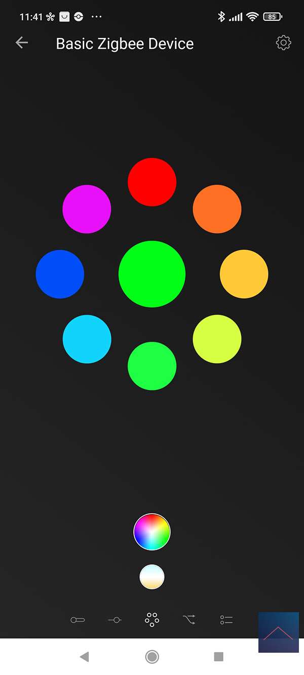 we kunnen de lamp dimmen, de RGB LED's van kleur veranderen, de witte LED's warmer of kouder maken en hem aan- en uitzetten.