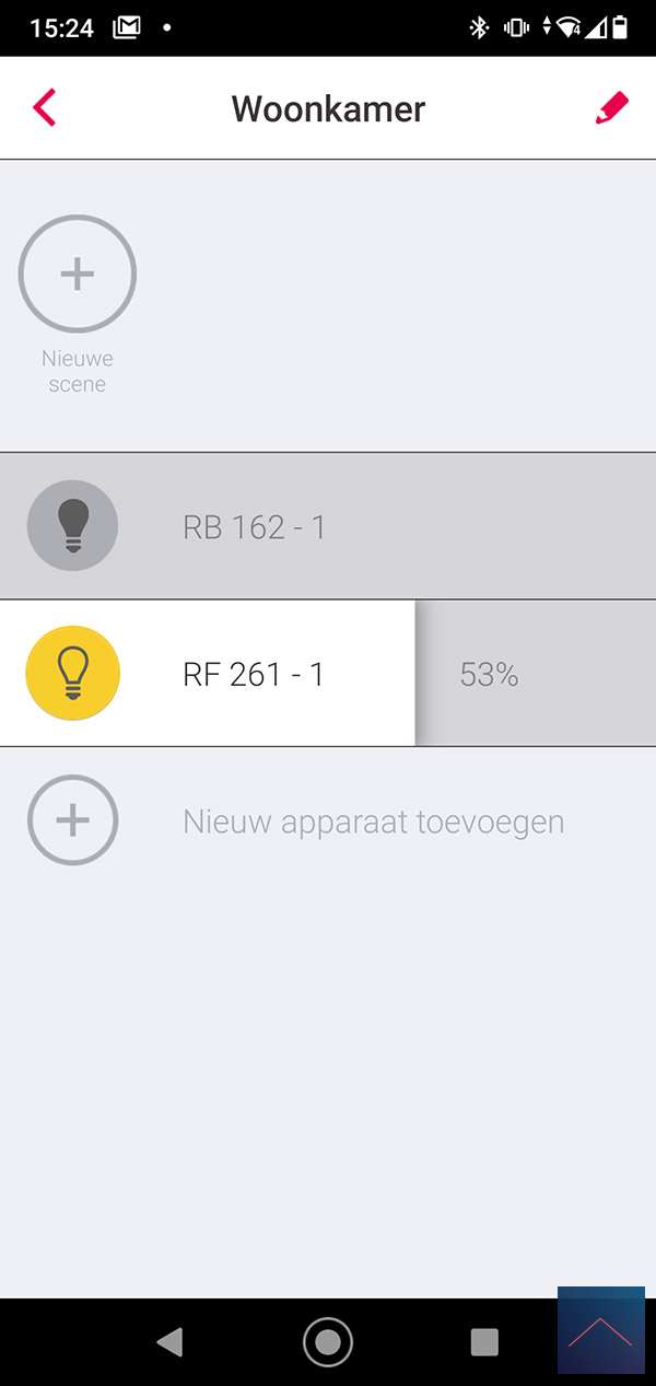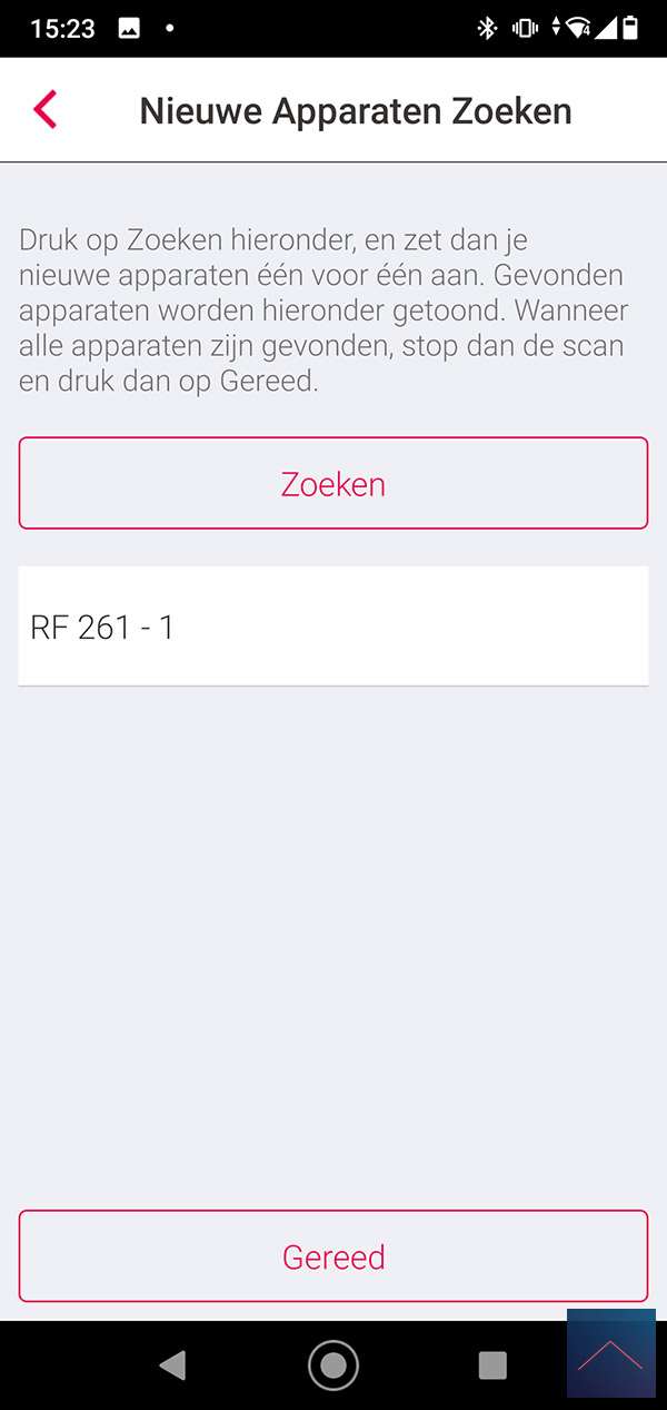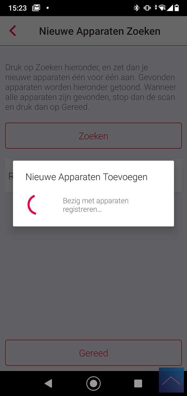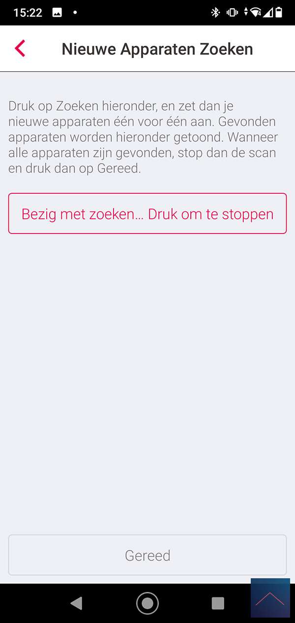 Nu de lamp van stroom is voorzien loggen we in op de INNR APP en drukken op de kamer waar we de lamp willen toevoegen. Je kunt natuurlijk ook een nieuwe kamer aanmaken om hem daar aan toevoegen. Druk vervolgens op "nieuw apparaat toevoegen" en vervolgens op zoeken. De APP zal gaan zoeken naar de lamp. Hij wordt snel gevonden en ik zie hem ook even kort knipperen. Druk vervolgens op stop met zoeken en druk op gereed. De lamp wordt nu echt toegevoegd. Mocht hij hem niet vinden dan kun je de lamp resetten door hem 6 keer aan-/uit te zetten.