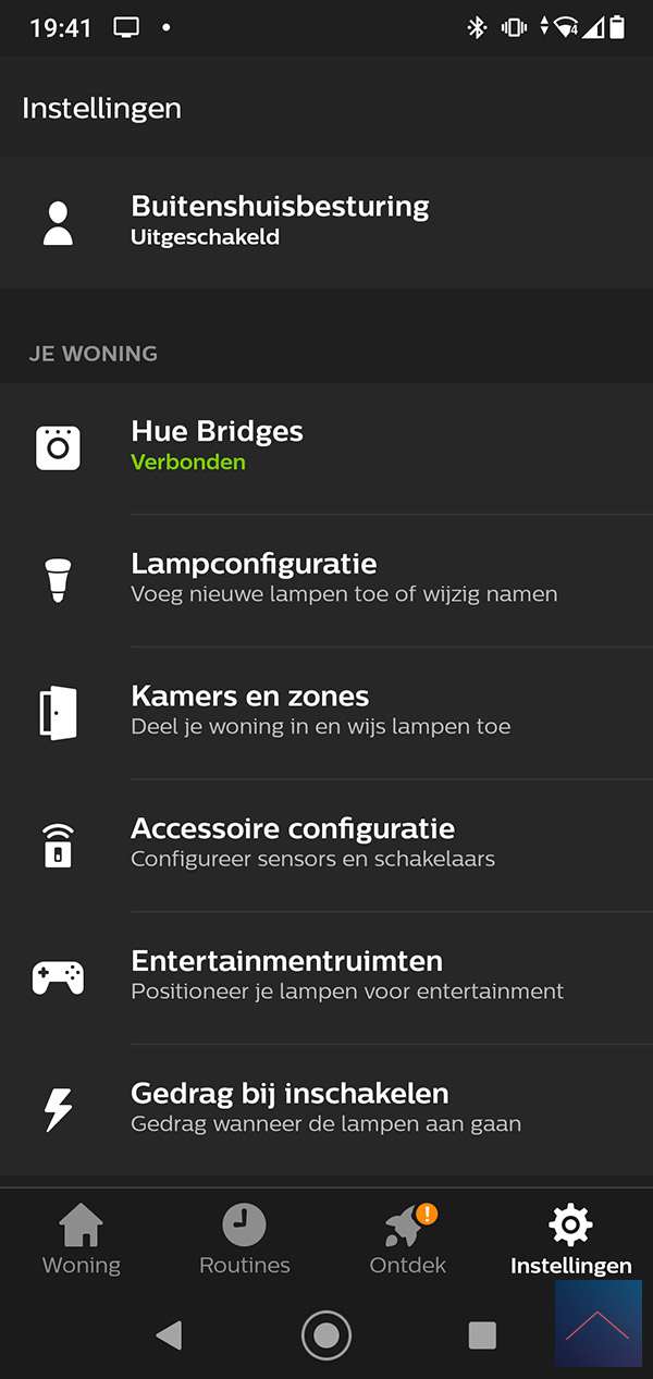 We starten nu de HUE APP op. Ik gebruik de officiële Philips APP maar met andere varianten zou dit ook moeten werken. Om de lamp toe te voegen gaan we naar instellingen en dan naar lampen configuratie. We drukken vervolgens op lamp toevoegen en op zoeken. We doen vervolgens de INNR even 1x even aan en uit. Hij zal kort even knipperen en ik zie hem in de APP naar voren komen. Ik geef hem meteen even een naam door op het i-tje te drukken. Als we toch bezig zijn plaatsen we hem meteen in de juiste kamer.