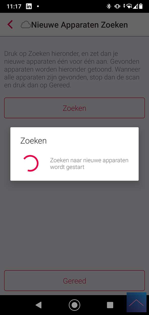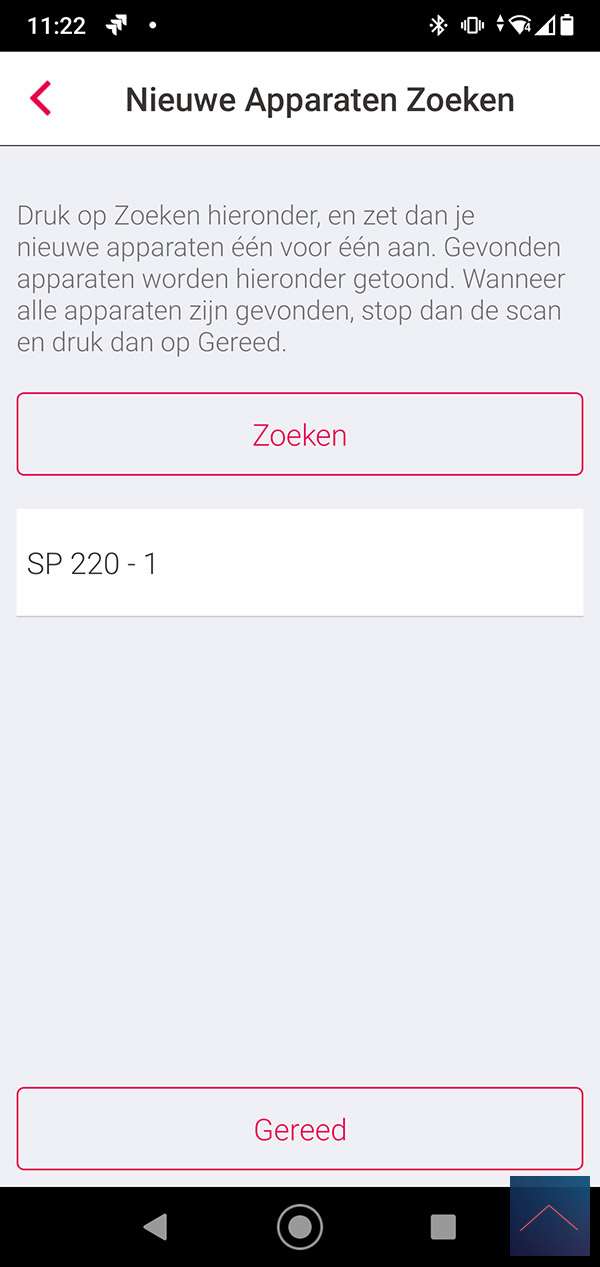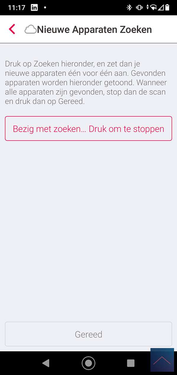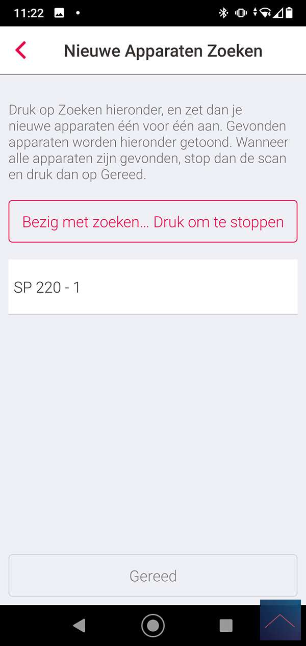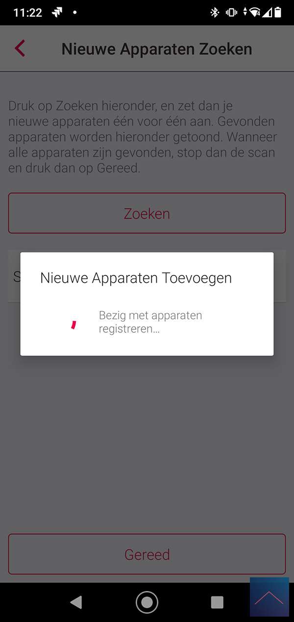 De eerste Gateway waar we de plug gaan toevoegen is die van INNR zelf. Zij hebben een leuke goedkope Gateway in hun assortiment. Deze kun je al kopen voor € 19.95. Om de plug toe te voegen starten we de APP op en gaan naar een kamer. We drukken vervolgens op "nieuw apparaat toevoegen" en hierna op zoeken. De APP zal gaan zoeken naar de tussen stekker. Zorg dat je nu het knopje aan de bovenkant 6 seconden ingedrukt houden. Het LEDtje zal eerst rood knipperen en vervolgens groen om aan te geven dat hij is toegevoegd. In de APP zie ik hem ook verschijnen en ik kan op stoppen drukken. Nu moet ik nog op gereed drukken om hem echt toe te voegen.