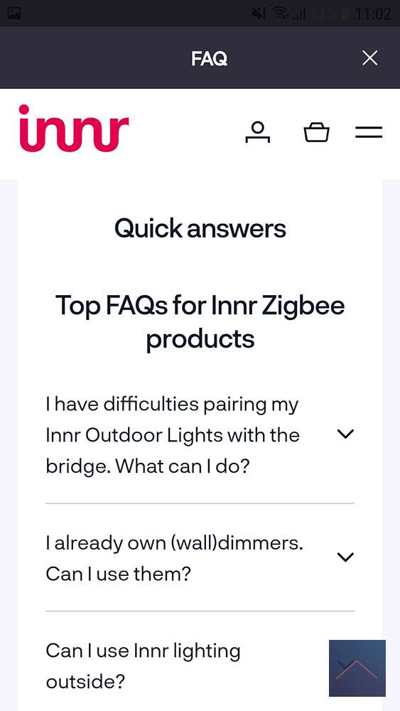 Er is een support sectie waar je antwoord op je vragen kunt vinden of contact kunt opnemen met INNR via feedback. Als eerste komen de vragen over Zigbee protocol aan bod, even door scrollen dus naar de WIFI producten.
