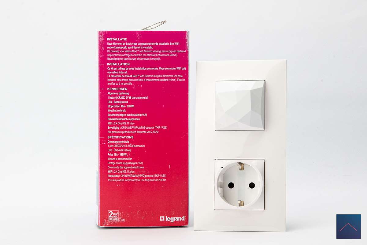 Terug naar het voor ons beschikbaargestelde product. Dit is een starterskit om kennis te kunnen maken met de productenlijn van Legrand genaamd: Valena Next. Hij bestaat uit een paneel met hub en een slim stopcontact. Daarnaast wordt er een wandschakelaar meegeleverd. Hiermee kun je o.a. detecteren of je wel niet thuis bent.