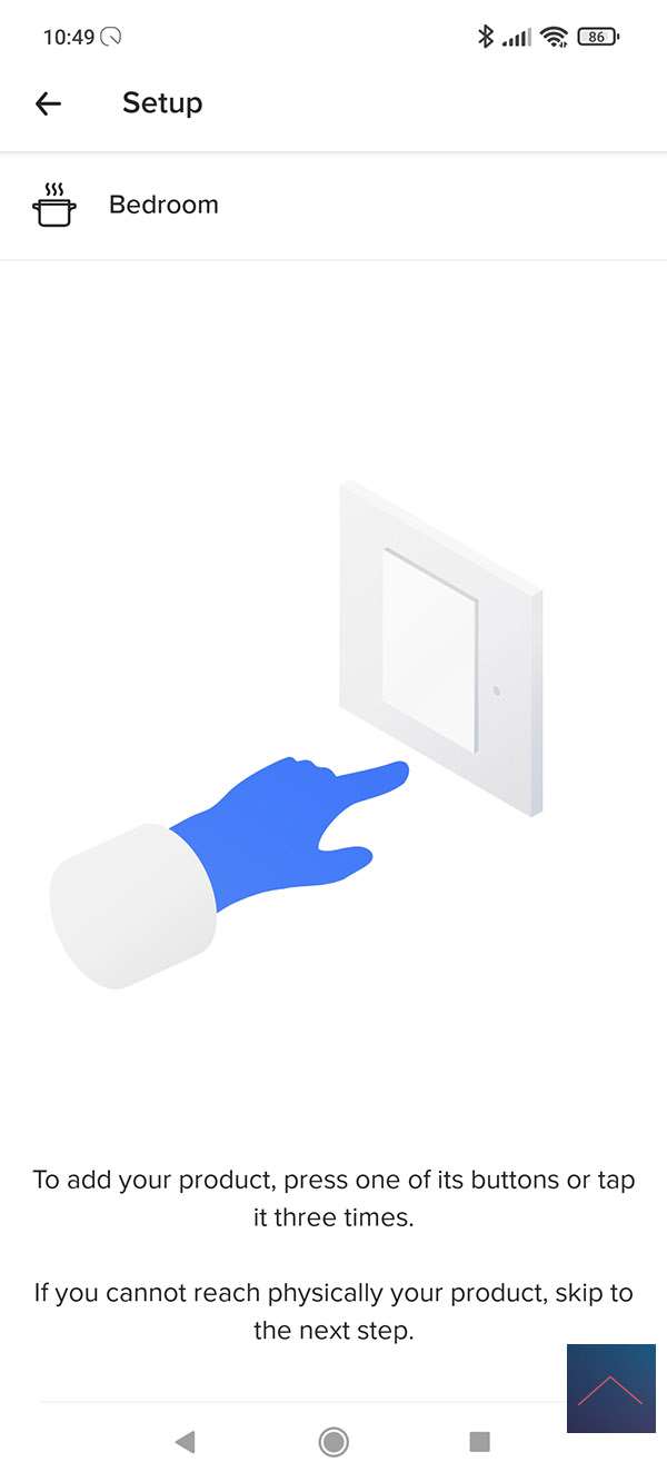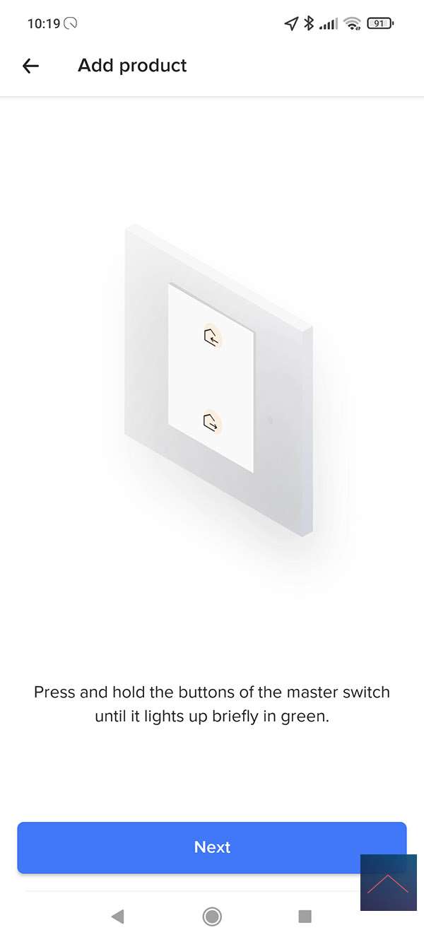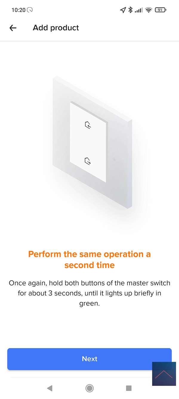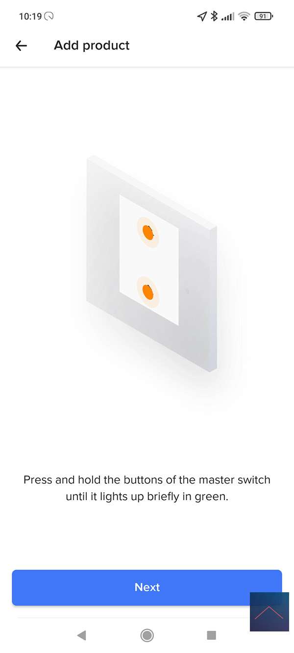 Na wat stappen wordt er gevraagd de knoppen van de wandzender tegelijk in te drukken totdat de LED groen oplicht. Dit moeten we herhalen. Nu wordt gevraagd mrt welk WiFi netwerk we willen verbinden. Deze selecteren we en zorg dat je geen 5Ghz verbinding gebruikt, dit wordt namelijk niet ondersteund.