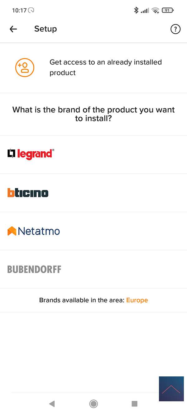 Na het aanmaken wordt er gevraagd wat voor product we aan het installeren zijn. In ons geval Legrand.