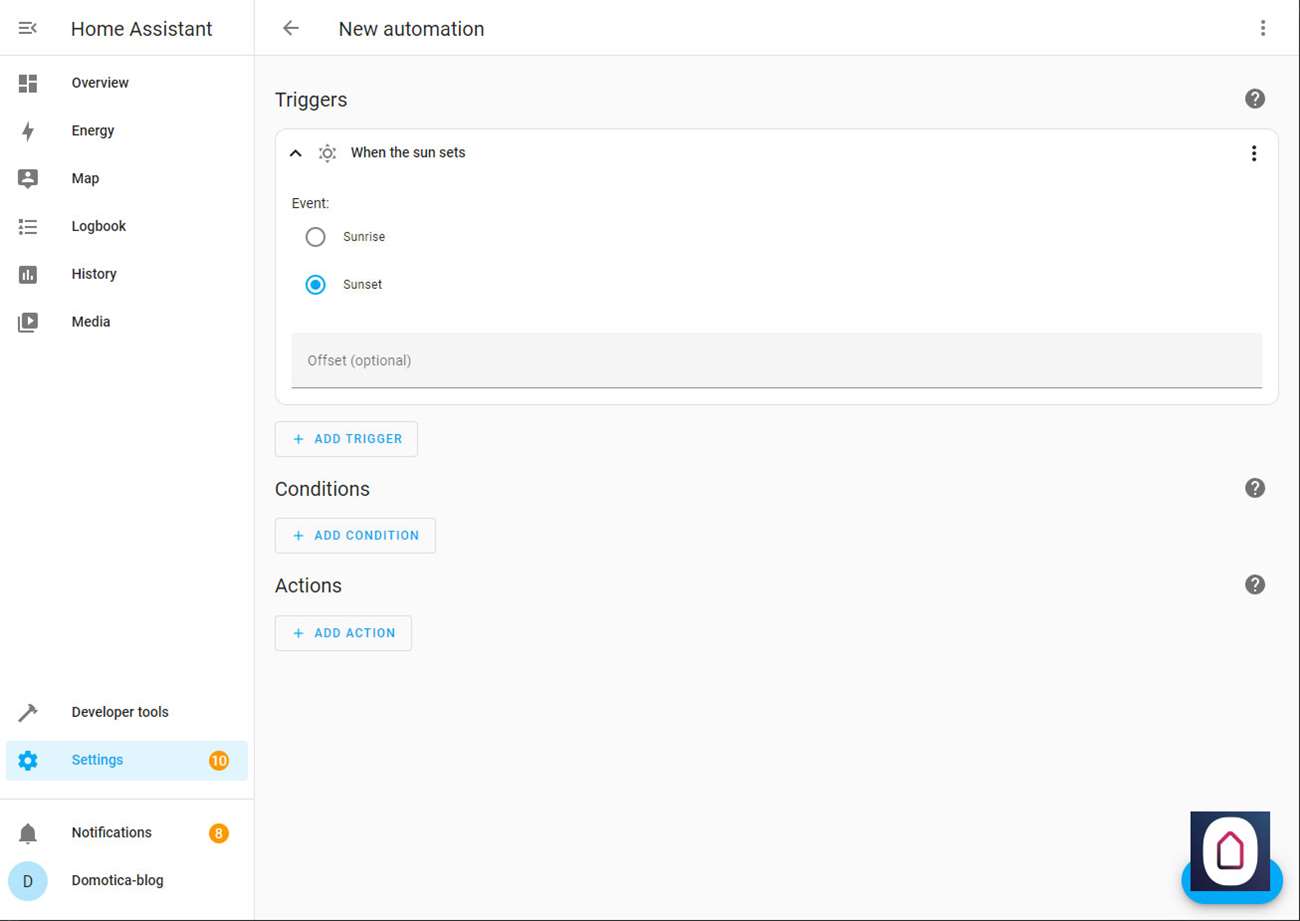 We maken als voorbeeld als de zon ondergaat, dat dan de lamp wordt aangezet.