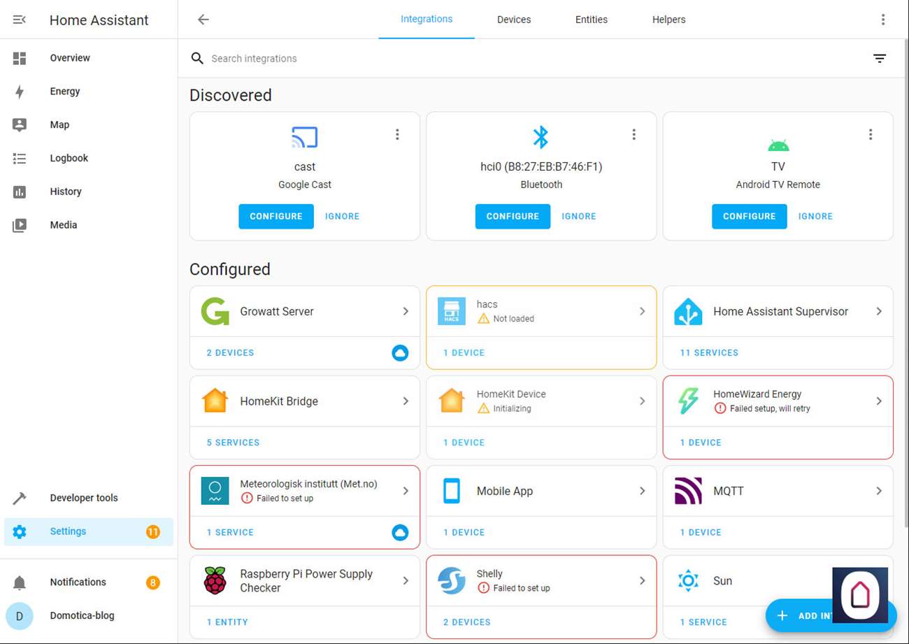 Installatie via Home Assistant: