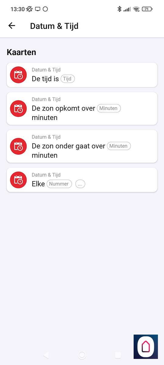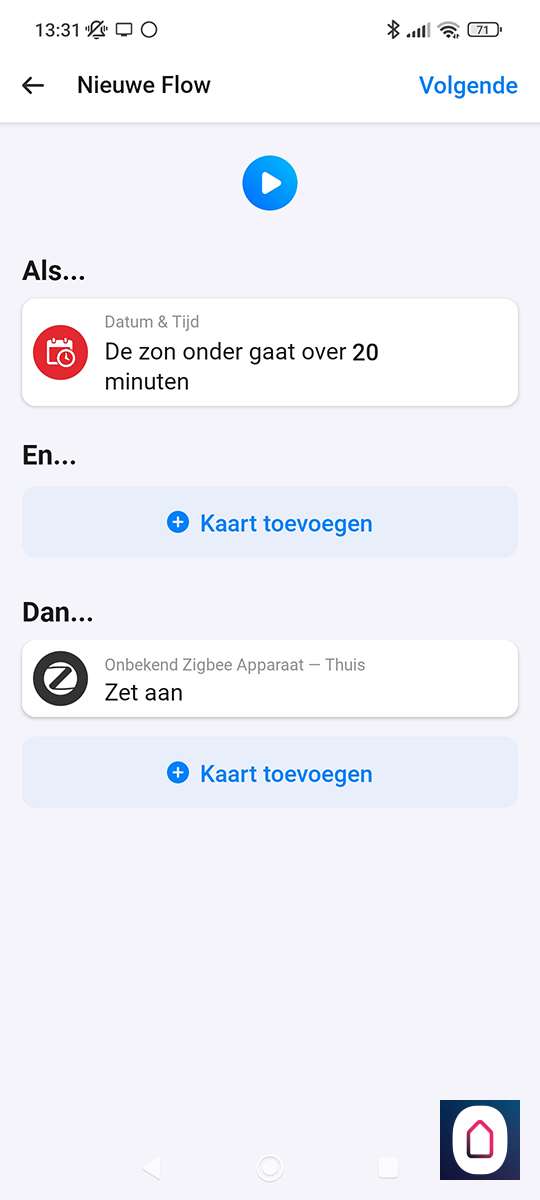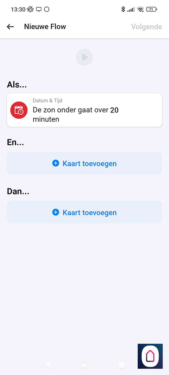 We maken als voorbeeld als de zon ondergaat, dat dan de lamp wordt aangezet.