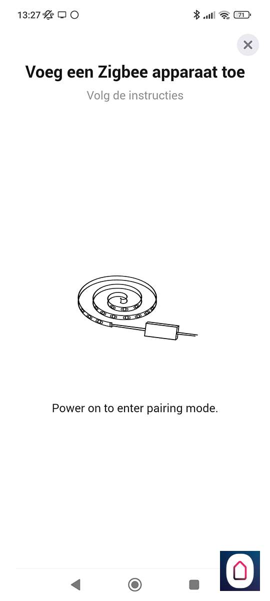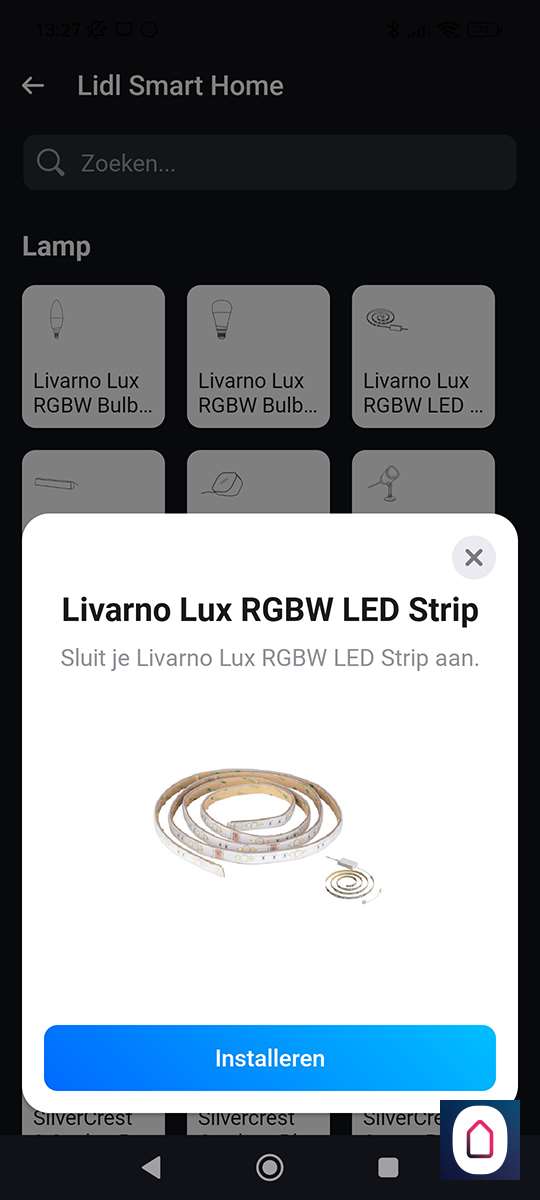 Het gemakkelijkste is om de lamp niet in de tuin te installeren maar gewoon lekker binnen toe te voegen naast de Homey. We voorzien hem dus van stroom, je ziet dan direct dat hij gaat pulseren, wat aan geeft dat je hem kunt toevoegen. We starten vervolgens de Homey APP op, gaan naar onze apparaten en drukken op het plus. Nu zoeken we op Lidl en zien inderdaad de lichtketting er niet tussen staan, maar aangezien dit gewoon een led strip is proberen we het even via dat apparaat. Vervolgens na wat stappen zie ik de LED knipperen en gevonden worden in de APP. Helaas komt er wel een melding dat hij is toegevoegd als "generic device" maar als we naar het apparaat gaan lijkt alles te werken zoals het hoort.