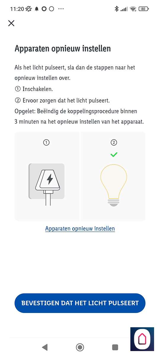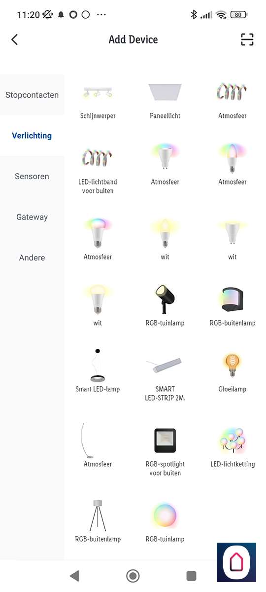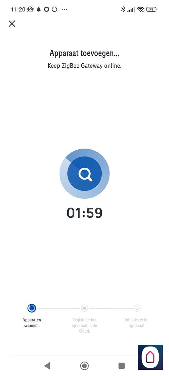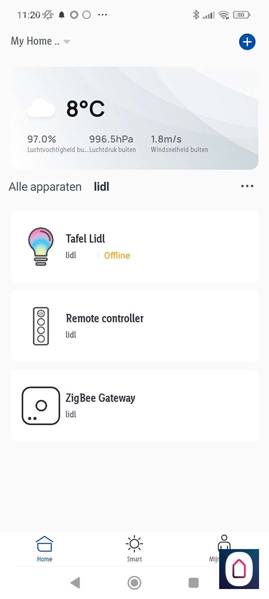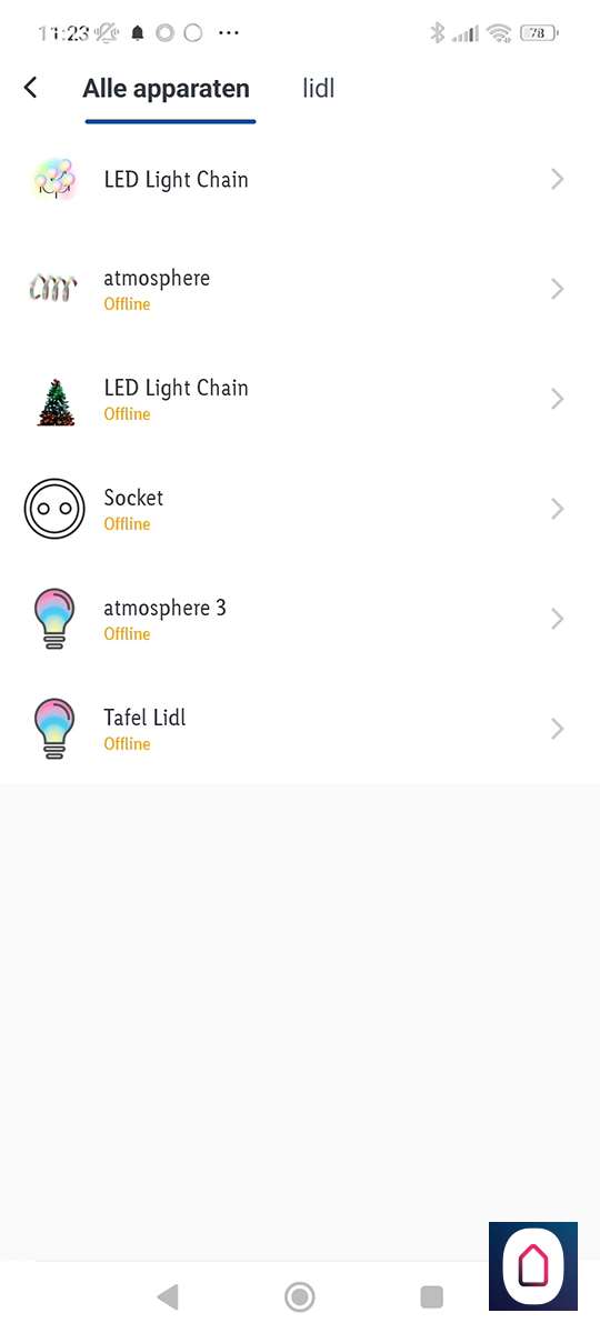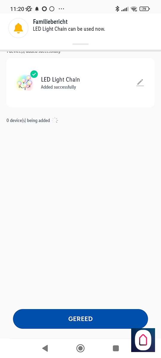 Laten we beginnen met het toevoegen van deze LED ketting aan de eigen hub van Lidl, dit zou natuurlijk appeltje eitje moeten zijn, het is tenslotte hun eigen product. Het gemakkelijkste is om de lamp niet direct in je tuin te installeren maar hem eerst in huis, naast de hub, van stroom te voorzien. Als je dit gedaan hebt zie je de lamp licht pulseren wat aangeeft dat hij in de leerstand staan. Nu starten we de APP op en drukken op het plusje en zoeken de LED-lichtketting op. De APP geeft aan dat de LED moet pulseren, dat doet hij, dus kunnen we door naar volgende stap. Na enkele seconden zien we de lamp een korte knipper geven en we zie hem in de APP verschijnen.