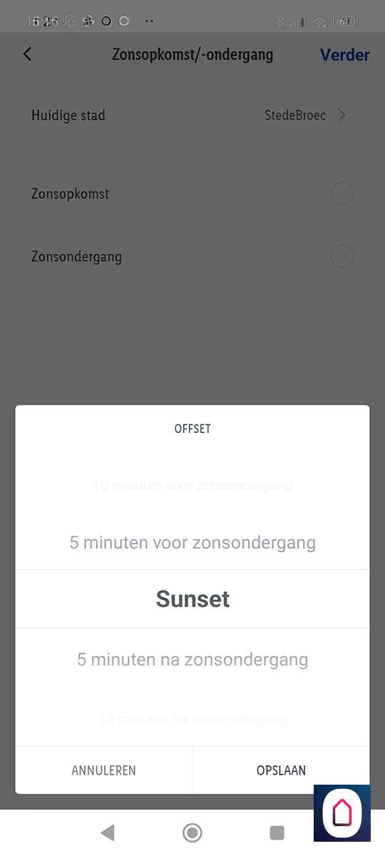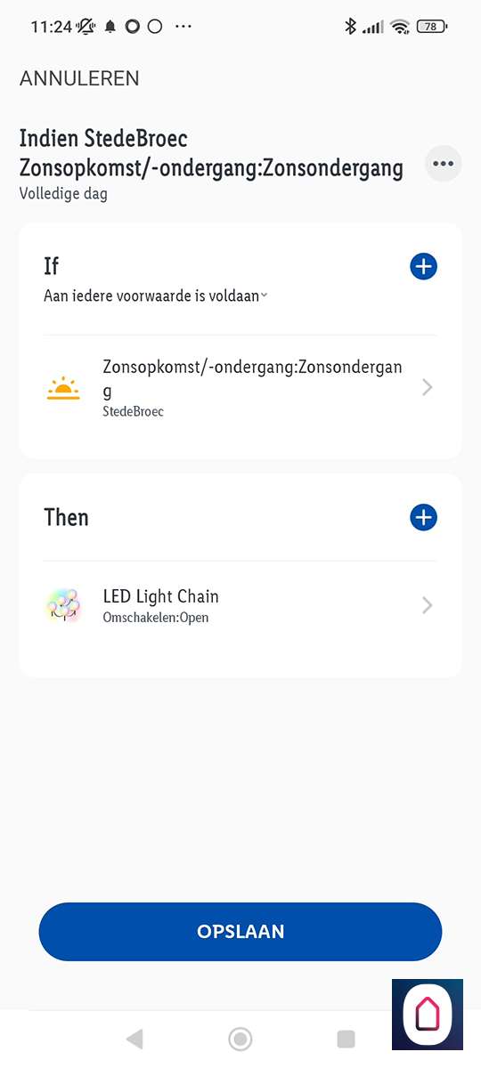 We maken als voorbeeld dat als de zon onder gaat de lamp wordt aangezet.