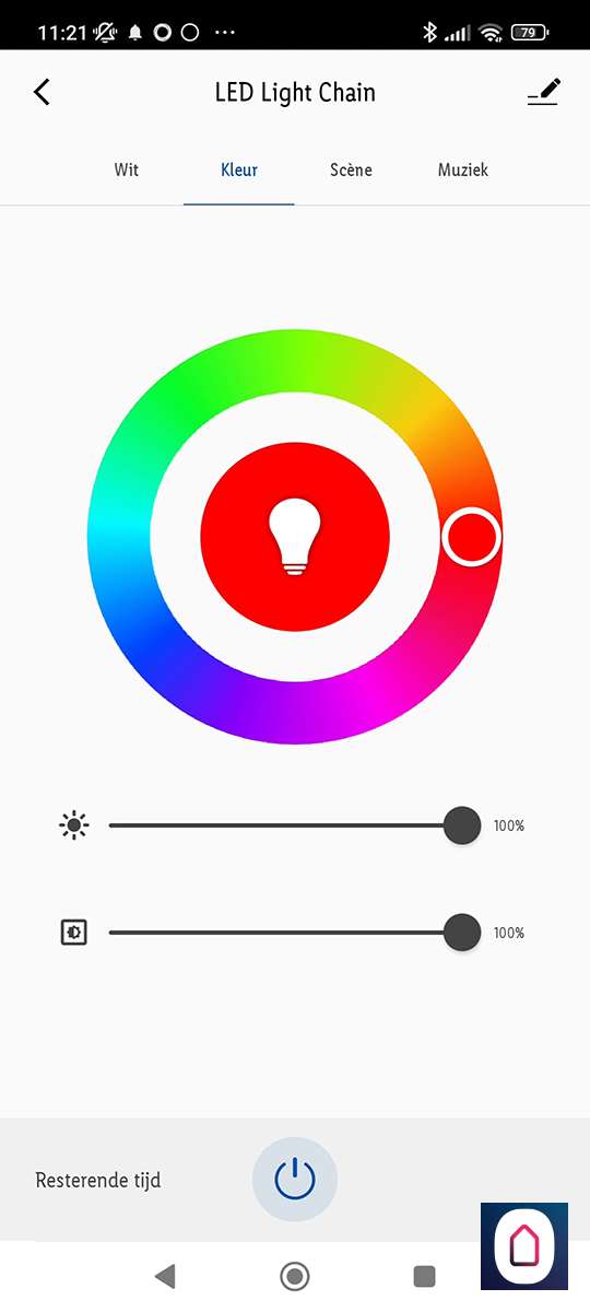 Je kunt de lamp aan- en uitzetten, het dimniveau bepalen, de kleur van de witte LED veranderen (warm/koud) en hem een vaste kleur geven via de RGB LED's. Je kunt ook nog de tint veranderen van de kleur. Dus veel mogelijkheden om het geheel naar je eigen hand te zetten.