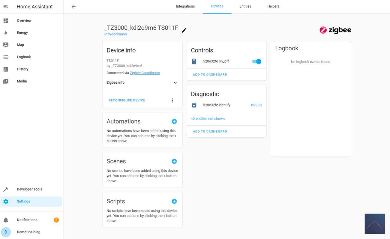 De eerste stap (mocht je dit nog niet gedaan hebben) is deze stick installeren op Home Assistent. Het is een kwestie van de stick in de PI te pluggen en dan naar de configuratie/intergraties te gaan. Je ziet hem dan direct staan. Nu moet je nog wat stappen doorlopen en zal hij automatisch worden toegevoegd.