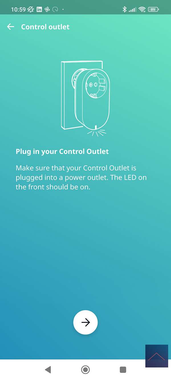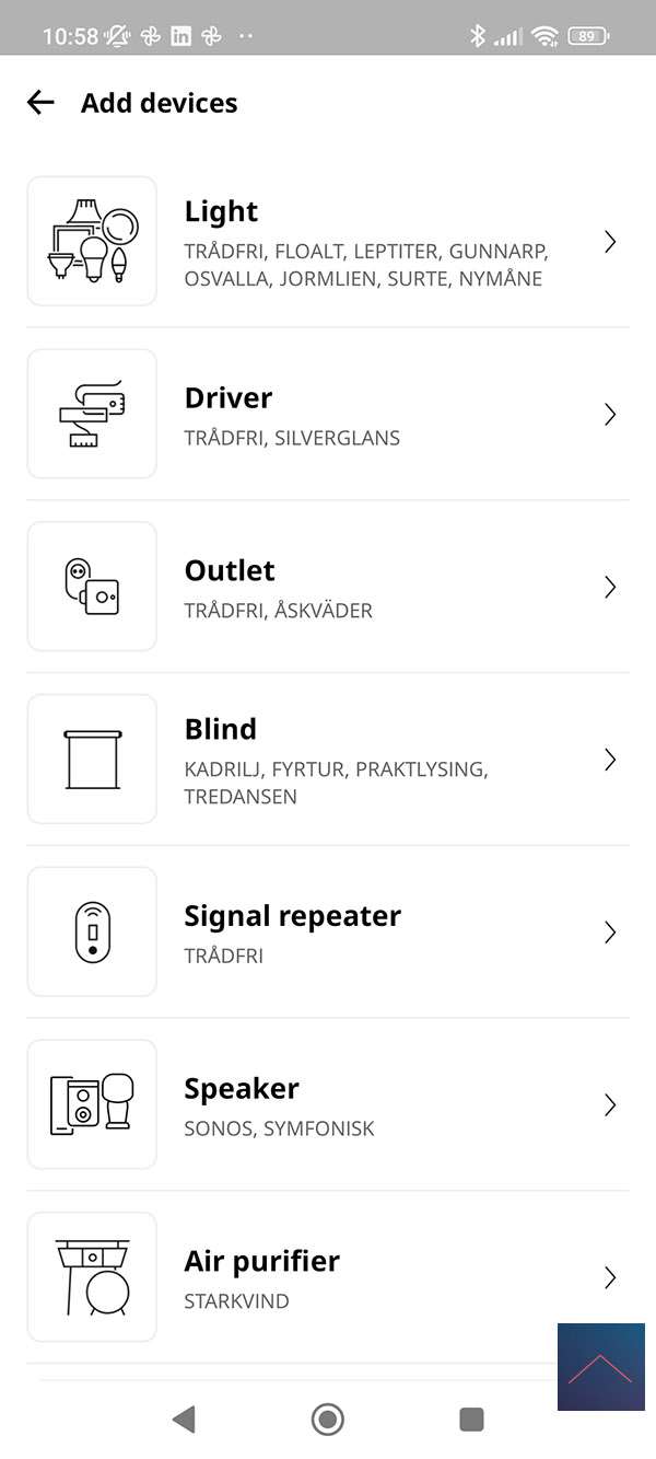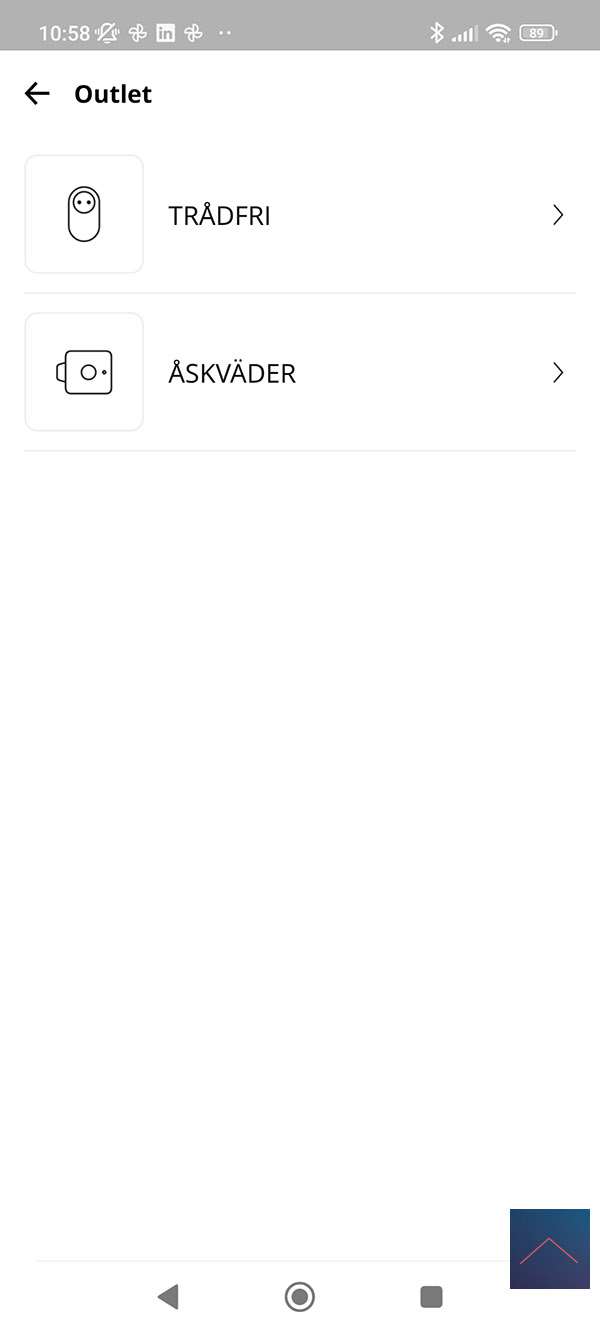 We loggen in op de Ikea APP om dit te testen. Vervolgens gaan we naar instellingen (radar icoon) en dan naar 'nieuw apparaat toevoegen' en selecteren 'de outlet'.