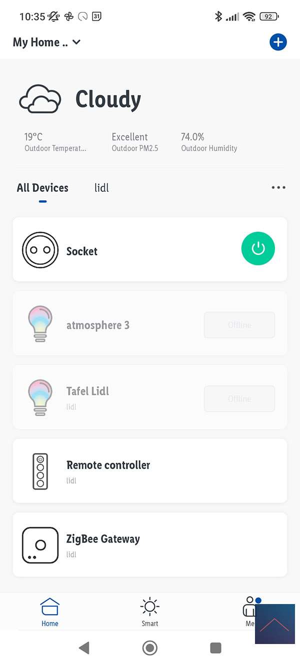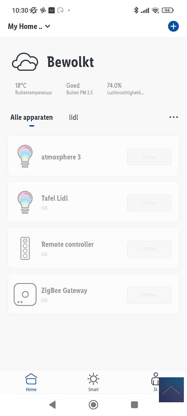 We gaan als eerste deze tussenstekker op de hub van de Lidl zelf installeren. Dit zou uiteraard zonder problemen moeten gaan. De eerste stap is om de APP Lidl Home op te starten en de tussenstekker in het stopcontact te steken.