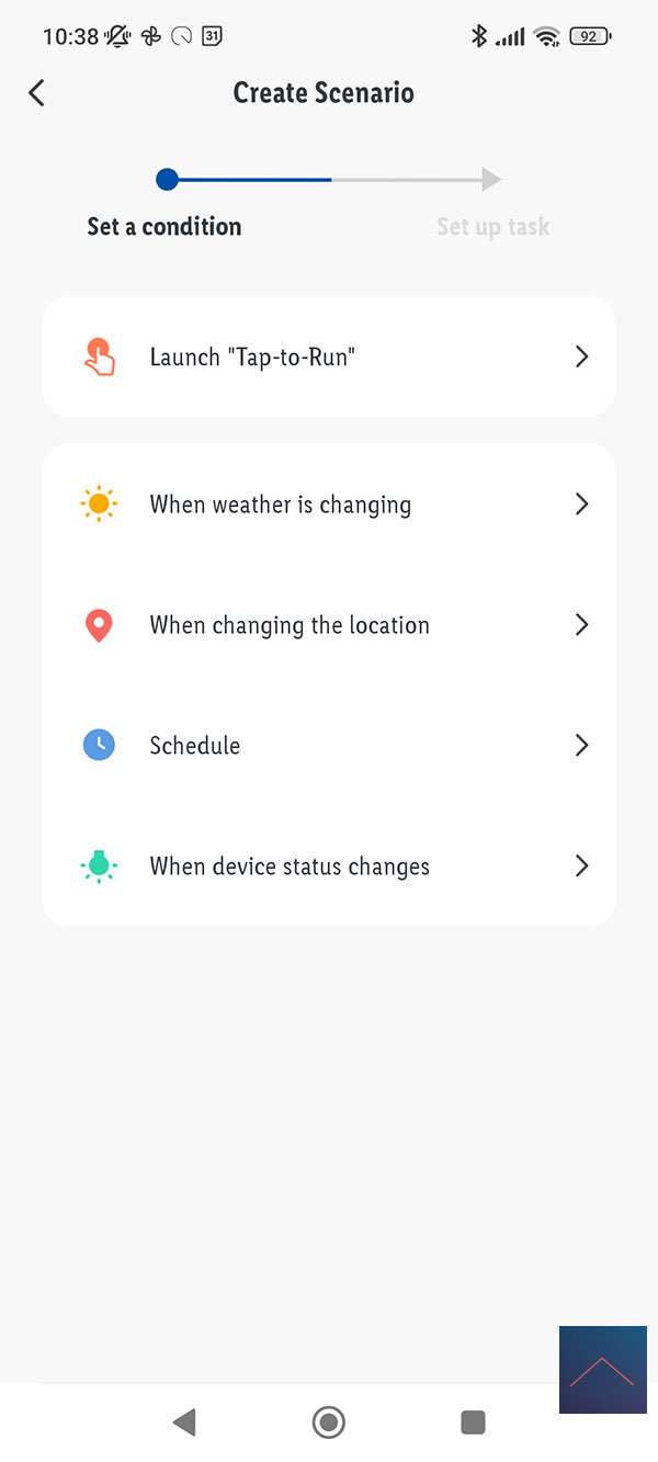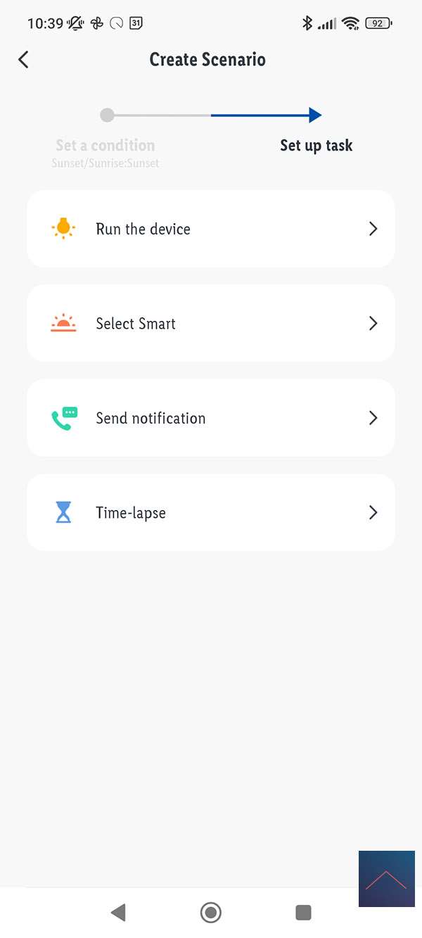 We willen zorgen dat als de zon onder gaat de tussenstekker (lamp) aan gezet wordt. Klik op smart en dan op het plusje en ga naar automation en maak een nieuwe.