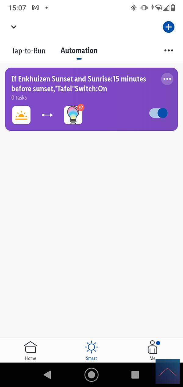 Nu we de meegeleverde apparaten hebben gekoppeld aan de gateway kunnen we beginnen met het systeem echt slim maken. Dit kan je doen dmv smart gedeelte in de APP. Dit bestaat uit 2 delen. Het "Tap to Run" gedeelte en het "automation" gedeelte. We gaan beide bekijken.